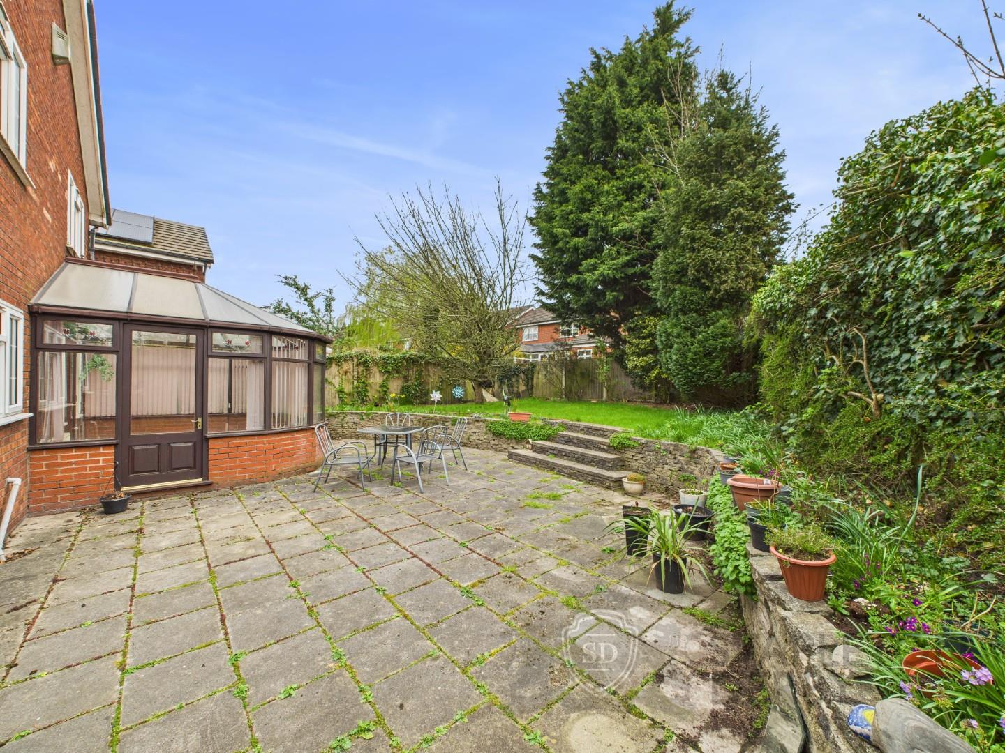 Externally, the property benefits from a garage, off-road parking, and a front garden. To the rear, there is a spacious two-tiered garden with both a patio and lawn area, providing an excellent outdoor space.