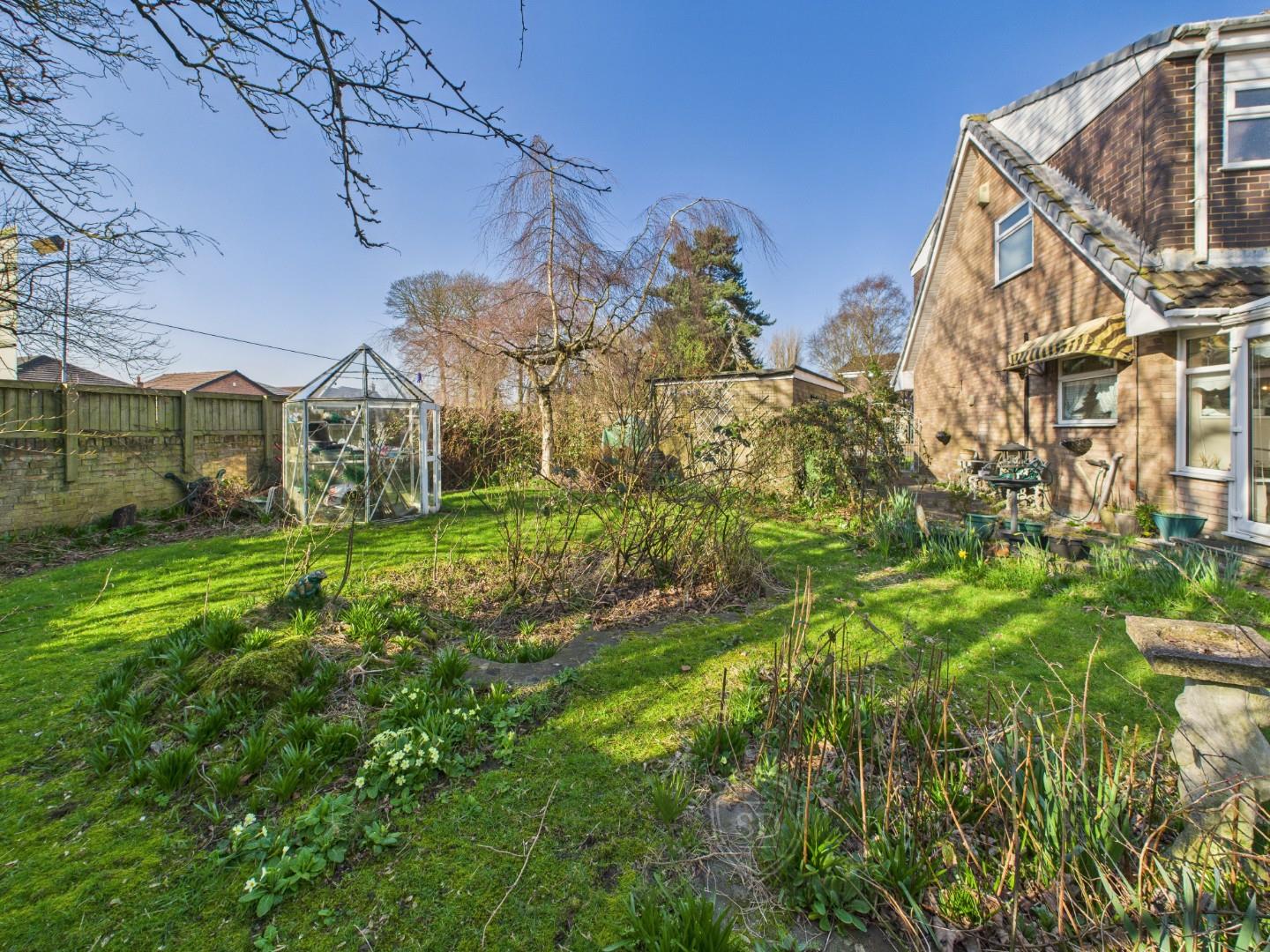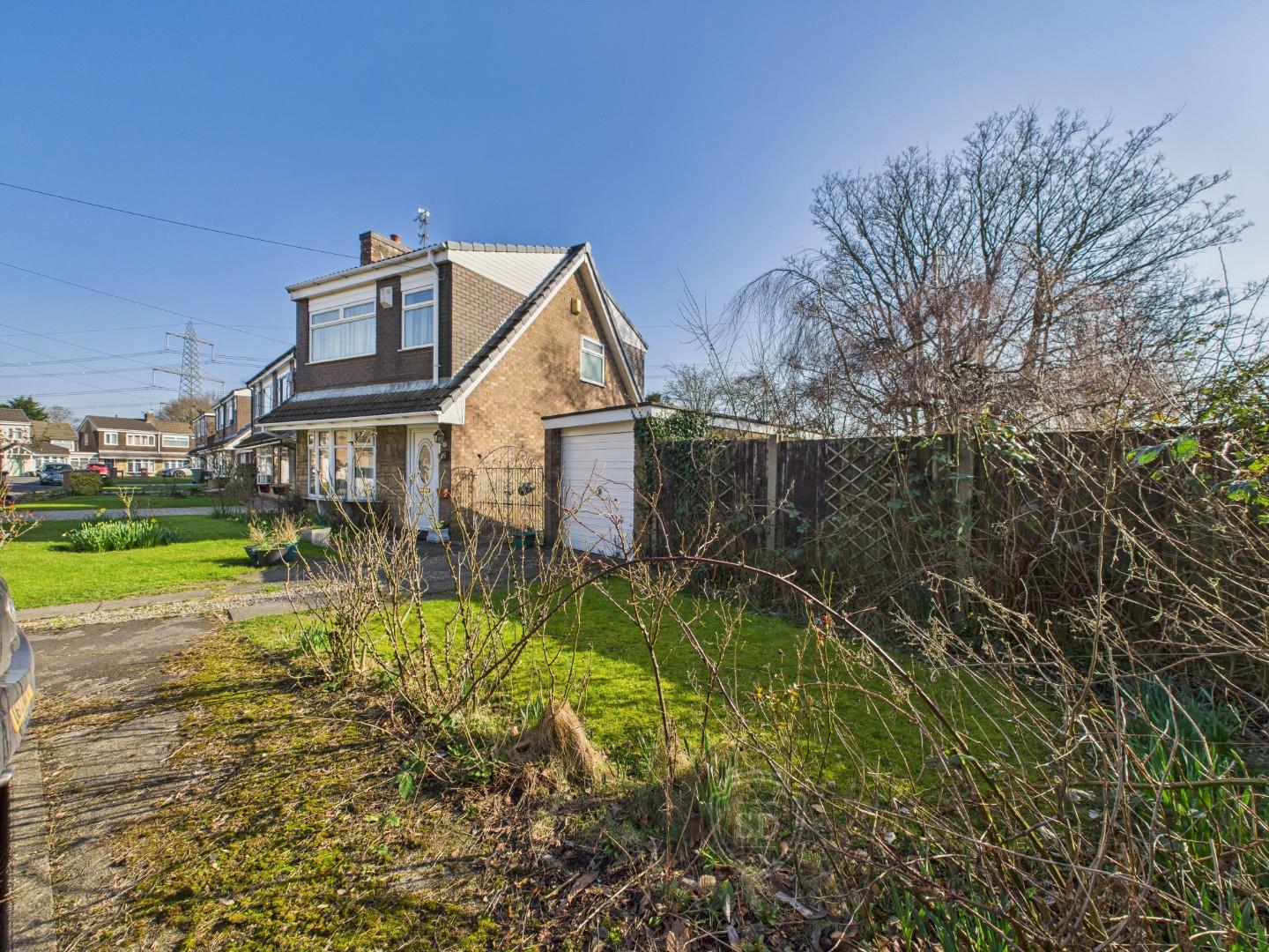 Currently vacant and offered chain-free, the home features a welcoming entrance hallway leading to a spacious living room, a separate dining room, kitchen and conservatory that provides additional living space, offering views of the extensive garden. Upstairs, there are three well-sized bedrooms, all served by a family bathroom. While the property requires modernisation, it presents a blank canvas for buyers to put their own stamp on it. Externally, the home benefits from off-road parking, a lawned frontage, and a detached garage. To the rear and side, the expansive garden offers incredible potential, whether for landscaping, extending the property (subject to planning), or simply creating a beautiful outdoor retreat.