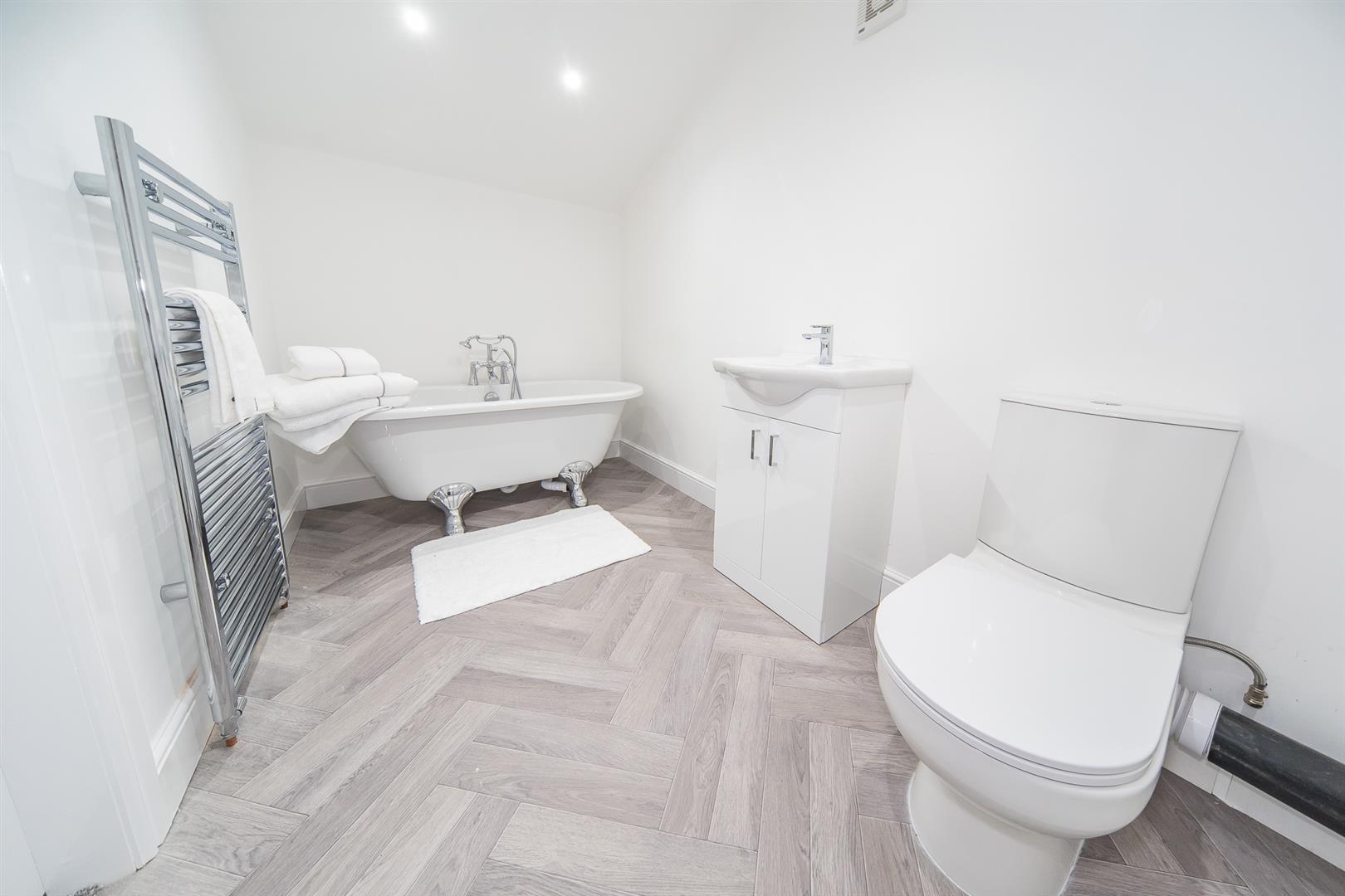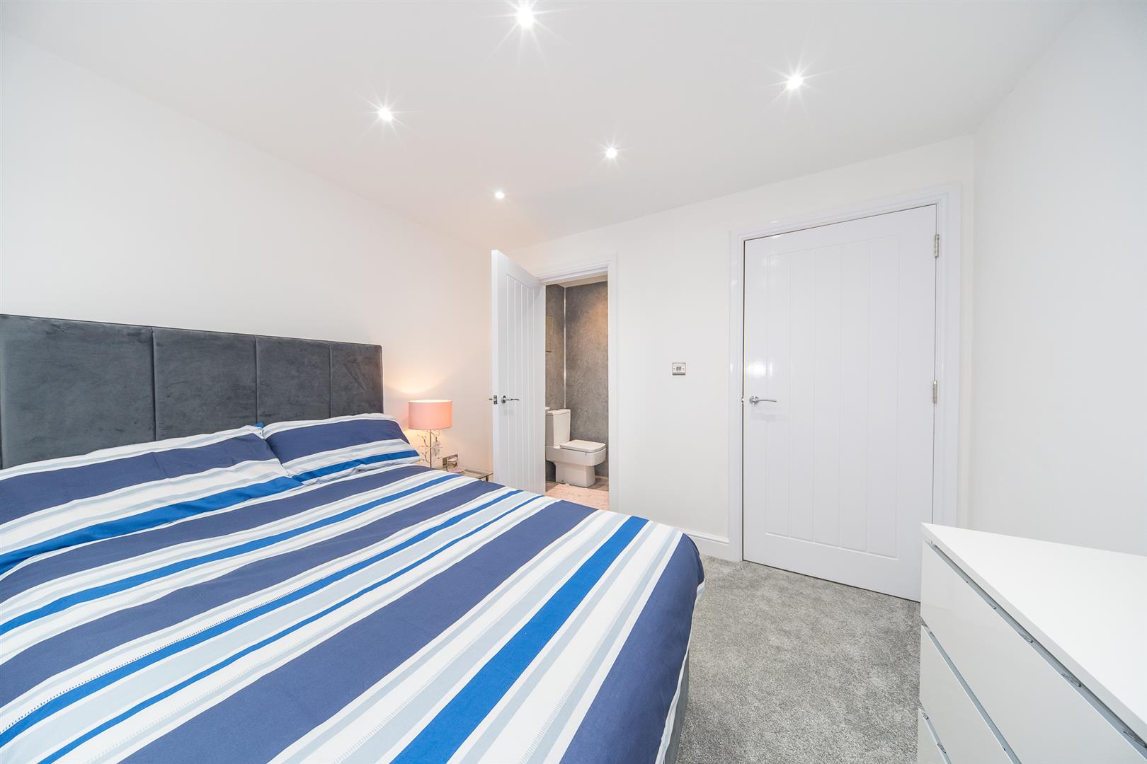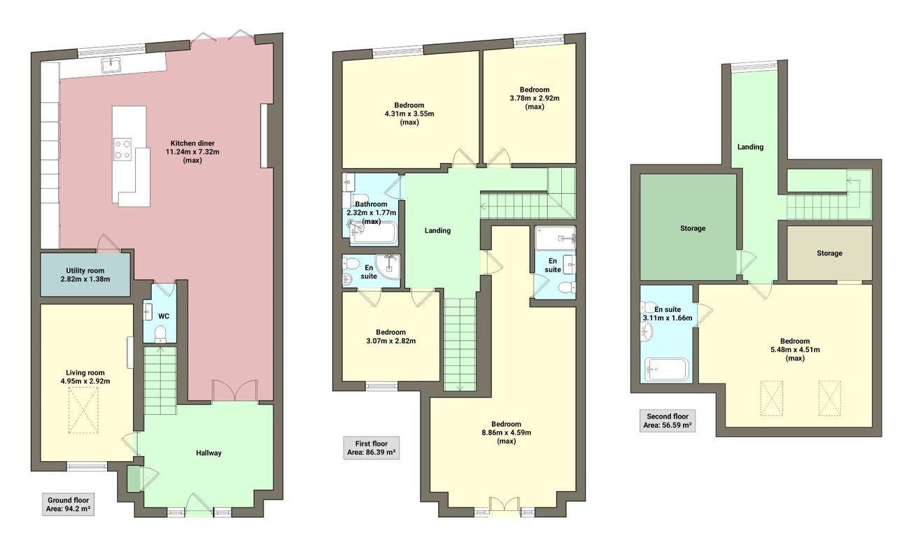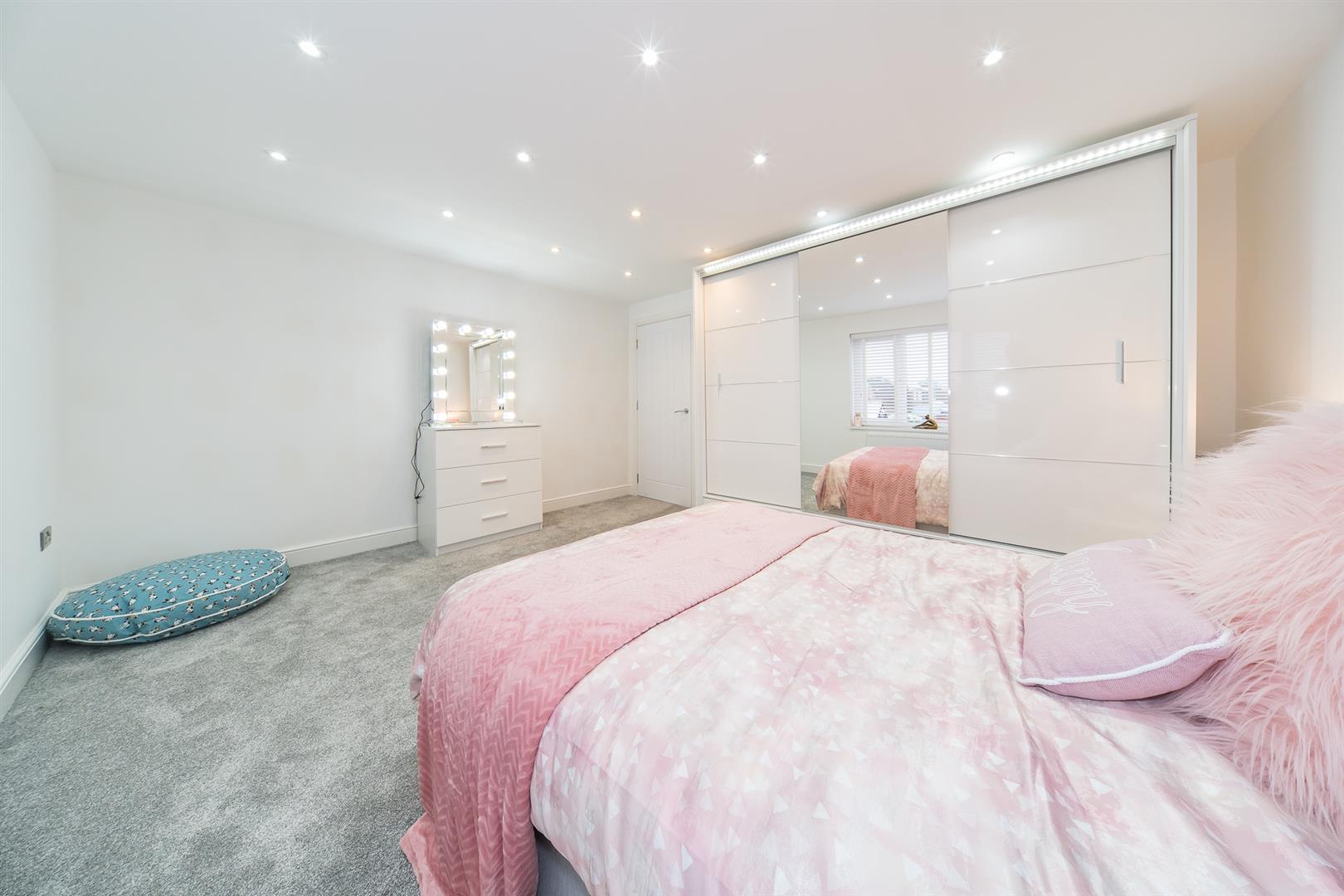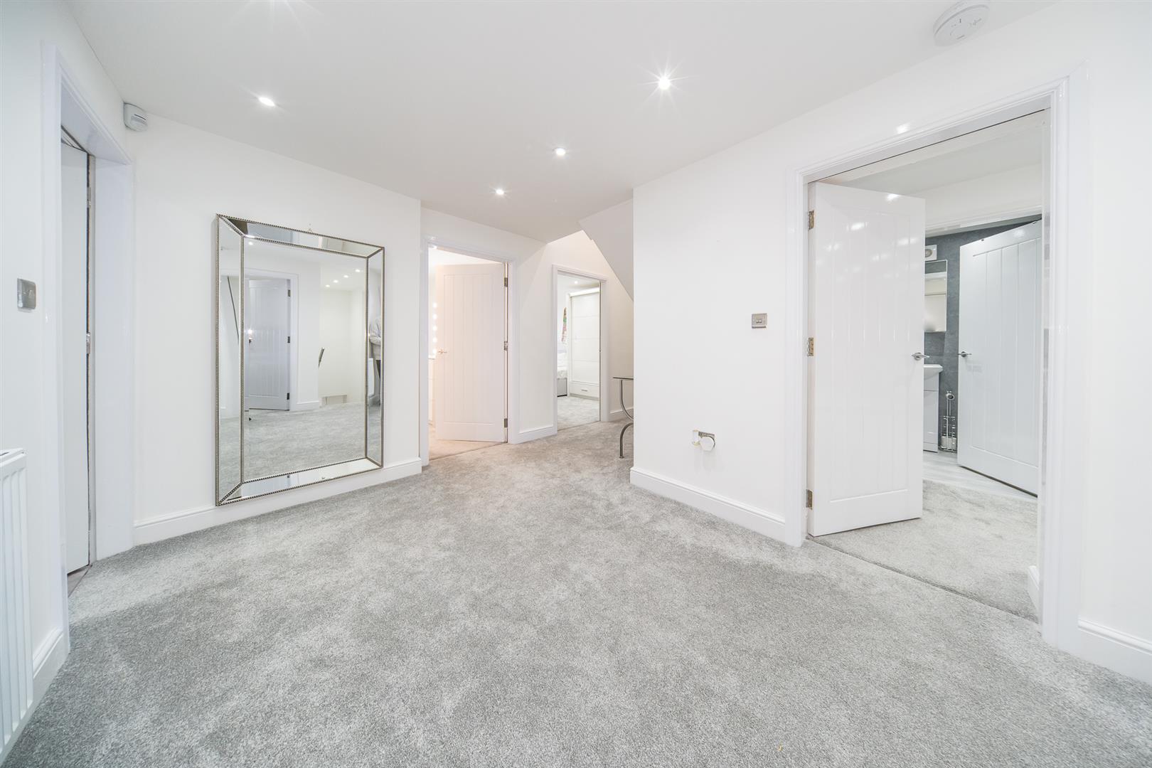 This impressive property features an entrance hall, a spacious living room, a generously-sized kitchen/diner, a downstairs WC, and a utility room equipped with access to the property's CCTV. The first floor boasts three double bedrooms (one with an en-suite), a master bedroom with its own en-suite, and a family bathroom. Ascending to the second floor, you'll find a sizable landing area with ample storage, a striking large feature window, and an additional double bedroom with an en-suite.