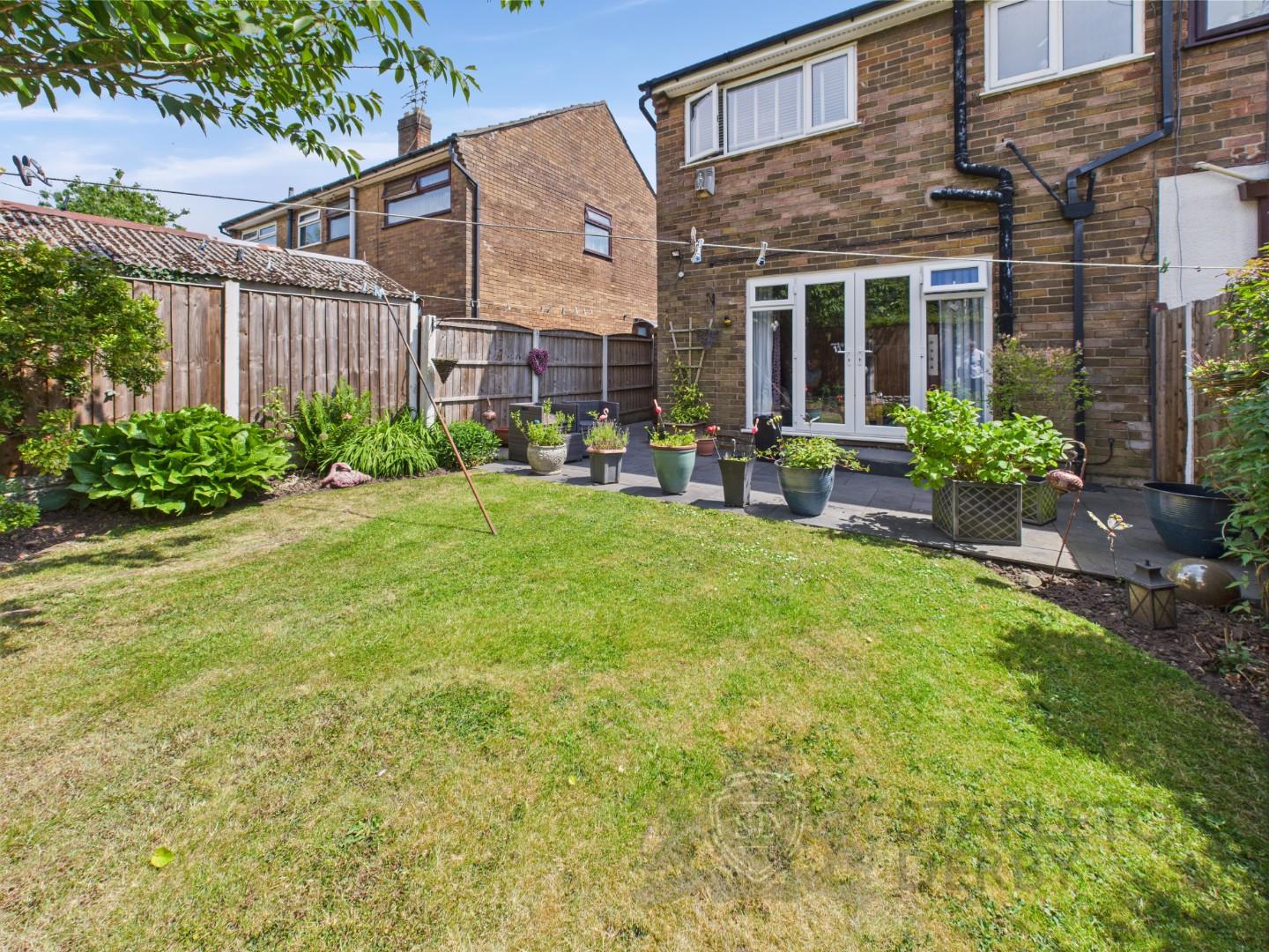 The accommodation comprises a welcoming porch, entrance hallway, a fitted kitchen and a generously sized living room with views over the rear garden. To the first floor, there are three well-proportioned bedrooms and a modern family bathroom. Externally, the property benefits from a front lawn, off-road parking and gated side access. The rear garden is well maintained, featuring a lawned area and a patio, perfect for outdoor entertaining.