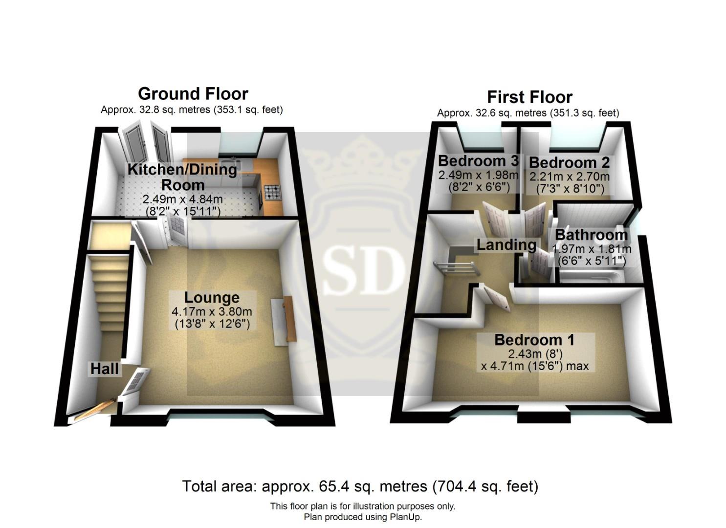 Briefly comprising open canopy porch, entrance hall, lounge and kitchen/diner. To the first floor there are three bedrooms, bedroom one has fitted wardrobes, family bathroom with panel bath and electric shower over, hand wash basin with vanity unity and wc.