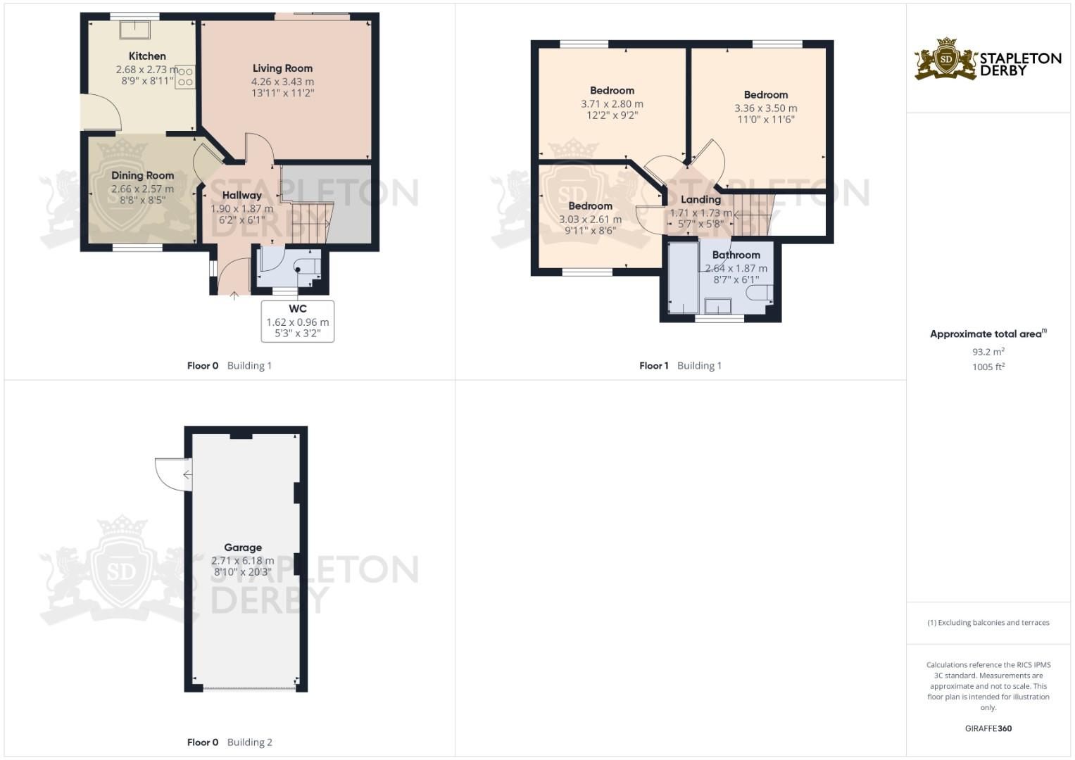 The accommodation briefly comprises: entrance hallway, downstairs WC, dining room, kitchen, and a generous living room. To the first floor, there are three double bedrooms and a family bathroom, providing flexible space for family life, home working, or guests. Externally, the property benefits from a lawned front garden and a side driveway providing off-road parking for two cars. To the rear, there is a detached garage, along with an enclosed garden and patio area—perfect for outdoor dining, entertaining, or family use.