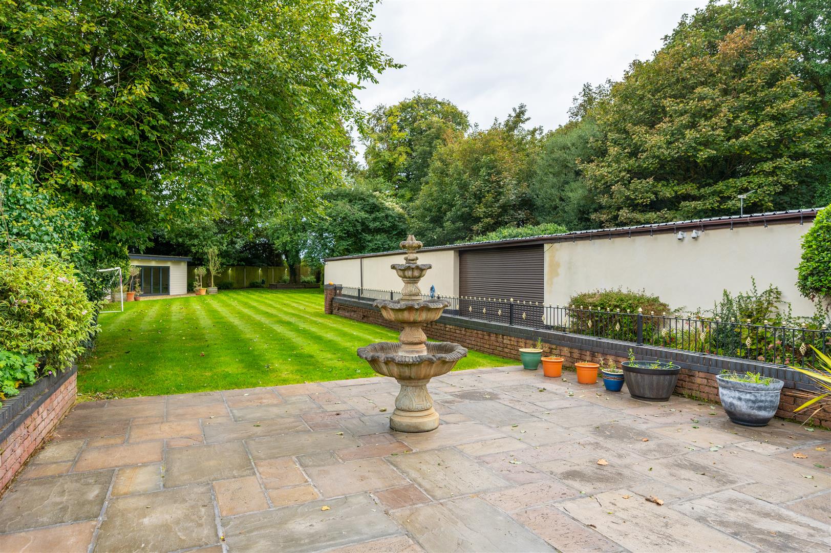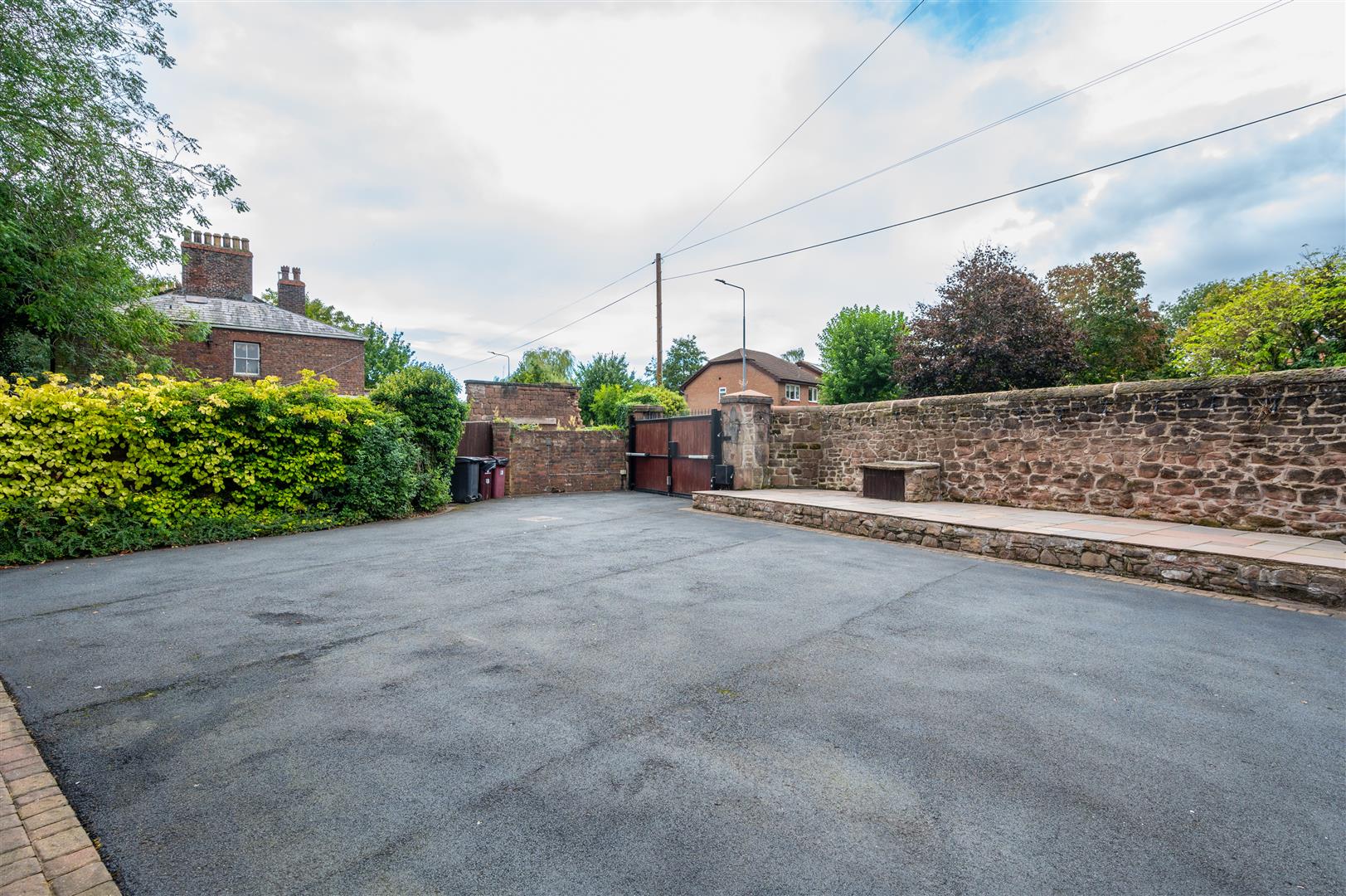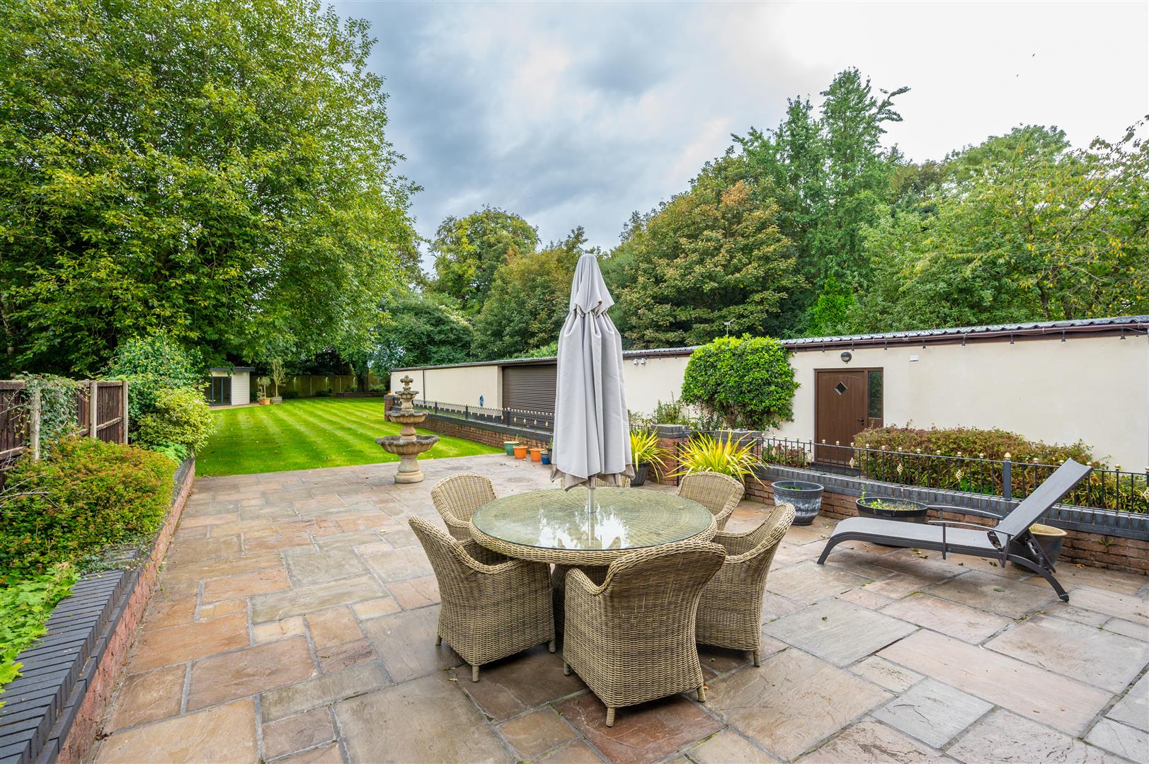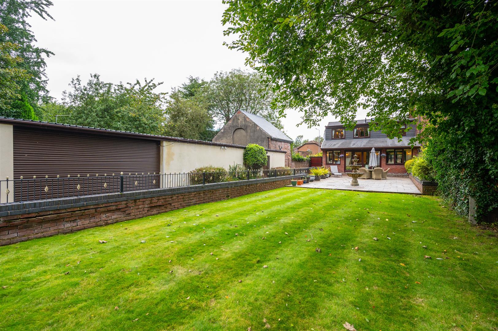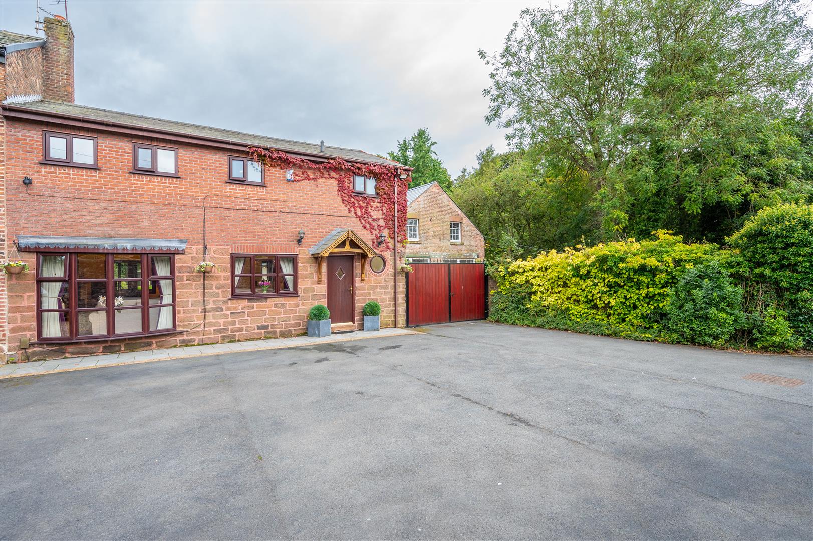 Externally, the property is cocooned in privacy, accessible through electric gates discreetly concealed behind a six-foot sandstone wall. This entrance leads to a private driveway providing ample parking space and access to the expansive outbuildings; the outbuilding has separate access entrance, utilities, plumbing, electricity supply and toilet. The rear of the property showcases an expansive landscaped garden and a charming garden room.