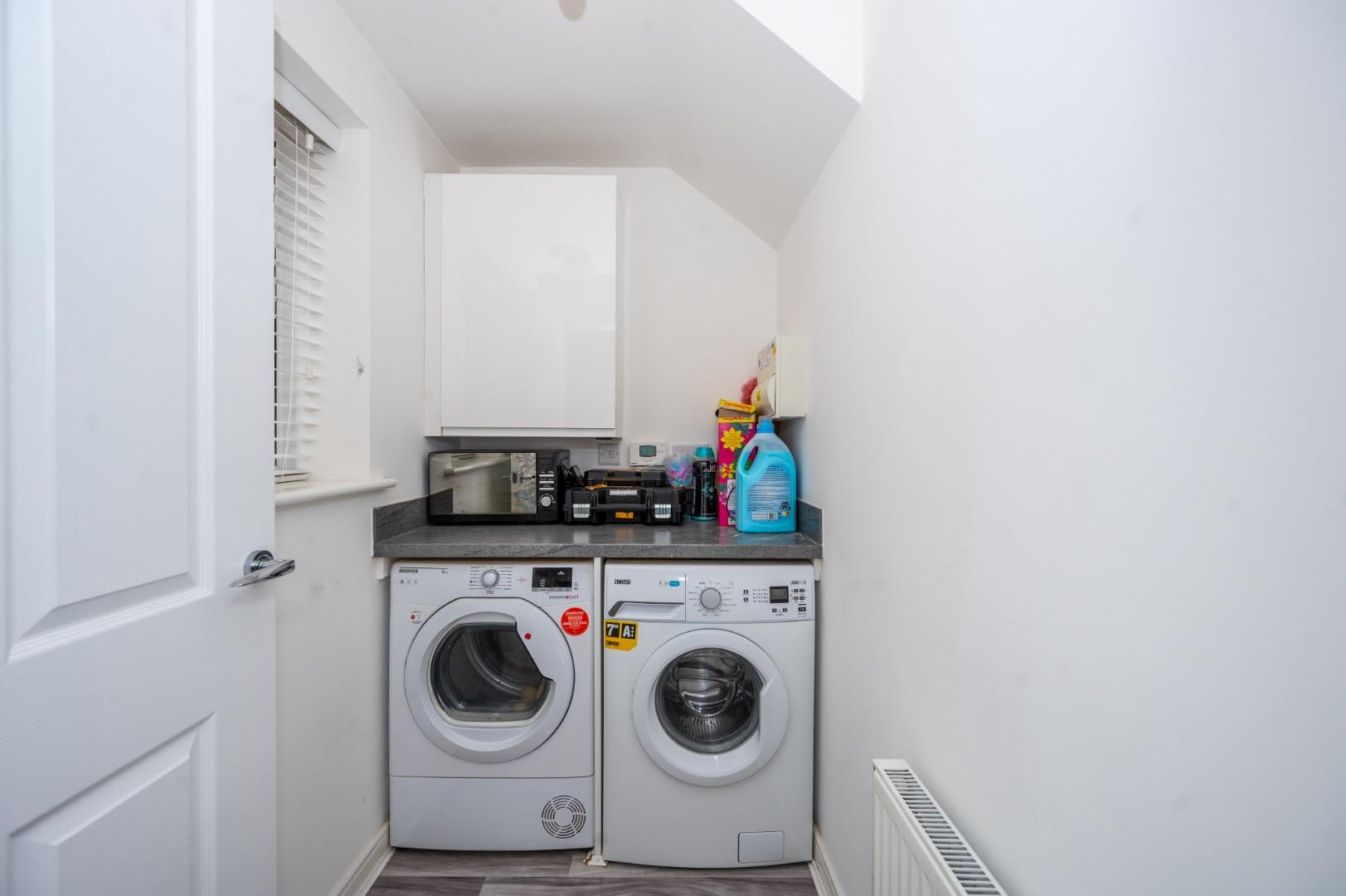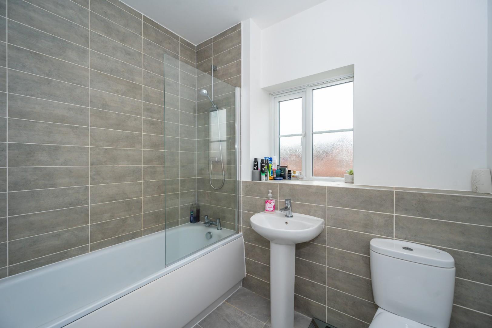 The property features an entrance hallway, downstairs WC and cloakroom, a spacious living room, a modern kitchen/dining area, and a utility room. On the first floor, there are three bedrooms, one with an en suite, and a family bathroom. Positioned on a corner plot, the property offers off-road parking for added security and peace of mind. The well-landscaped garden with a patio area at the side and rear enhances outdoor living.