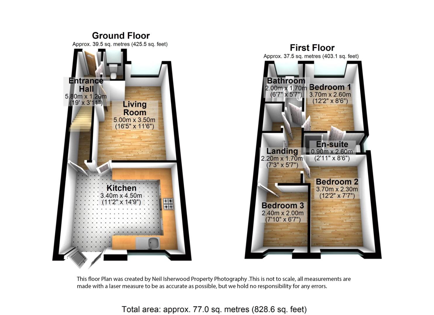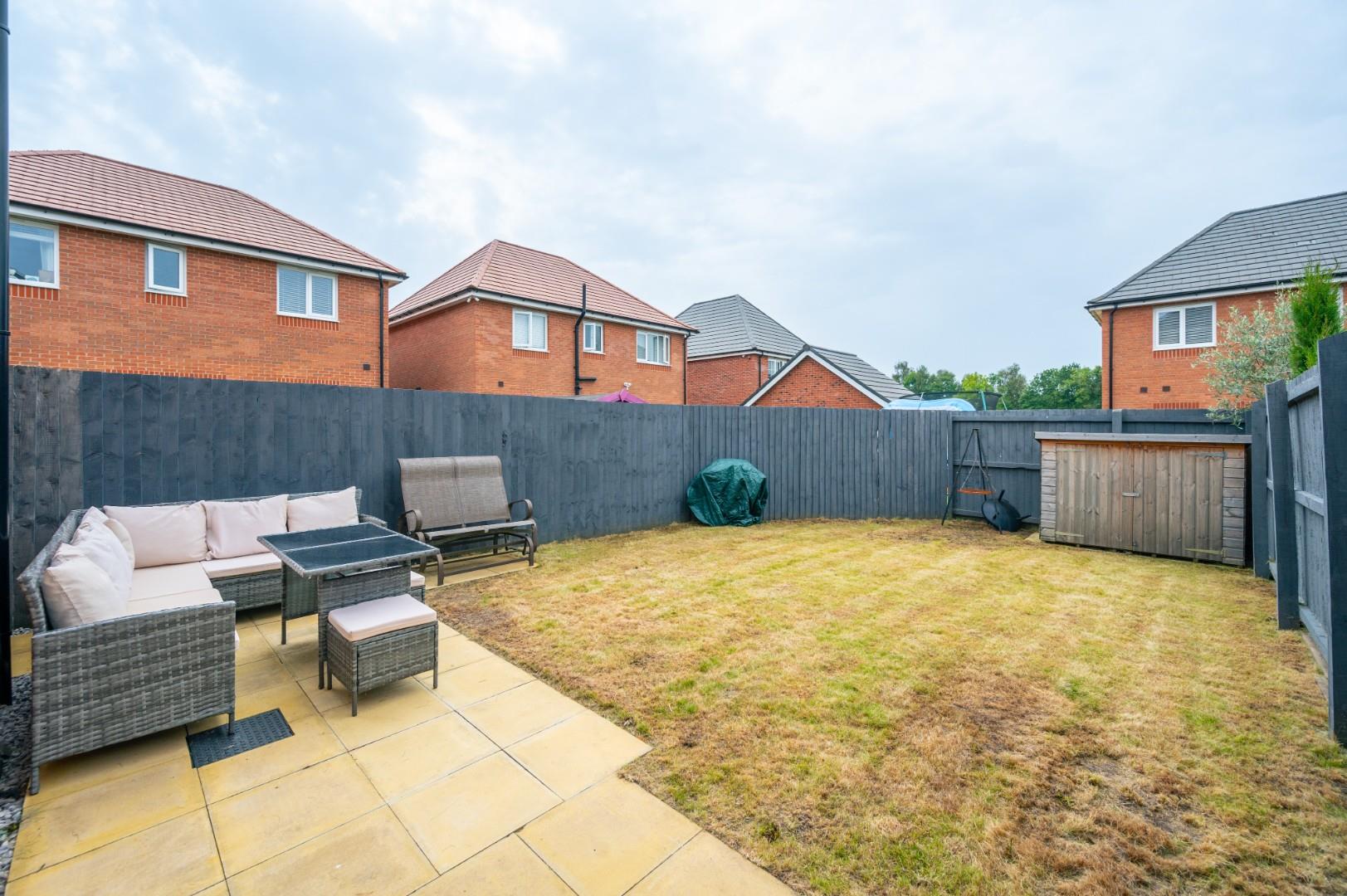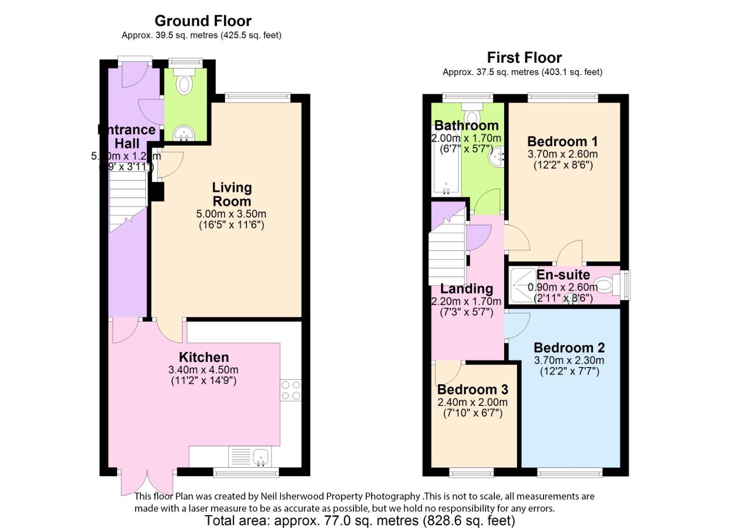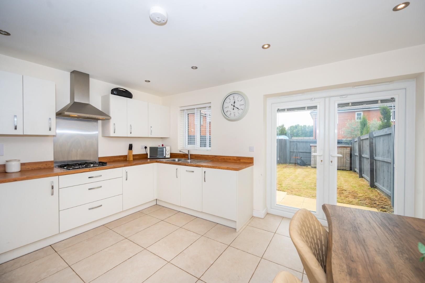 The residence features an entrance hall, a downstairs cloakroom, a comfortable lounge, and a dining kitchen equipped with integrated appliances. Upstairs, you'll find three generously proportioned bedrooms, including an en suite in the master bedroom, as well as a contemporary family bathroom. The property offers off-road parking at the front and a spacious rear garden.