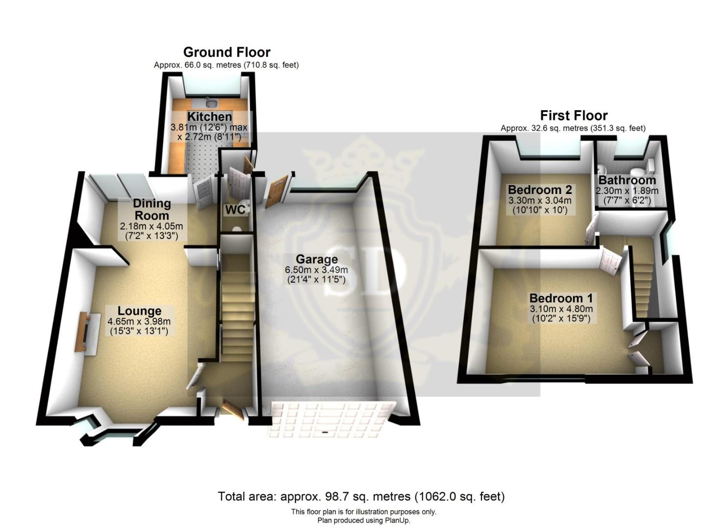 Briefly comprising spacious through lounge/dining room, fitted kitchen and downstairs cloaks/wc. To the first floor there are two double bedrooms with fitted wardrobes and family bathroom.