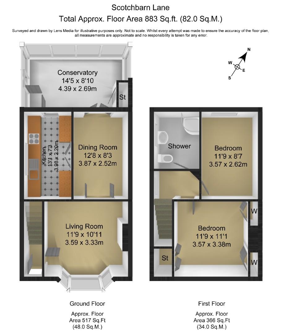Briefly comprising entrance hall, lounge with feature fireplace and gas fire, dining room, modern galley kitchen with a range of wall and base units with contrasting work surfaces over, 'Stoves' gas hob and oven with extractor fan over, fantastic newly built conservatory. To the first floor there are two spacious bedrooms with fitted wardrobes to bedroom one, lovely contemporary shower room with newly installed shower and cubicle which is a good size.