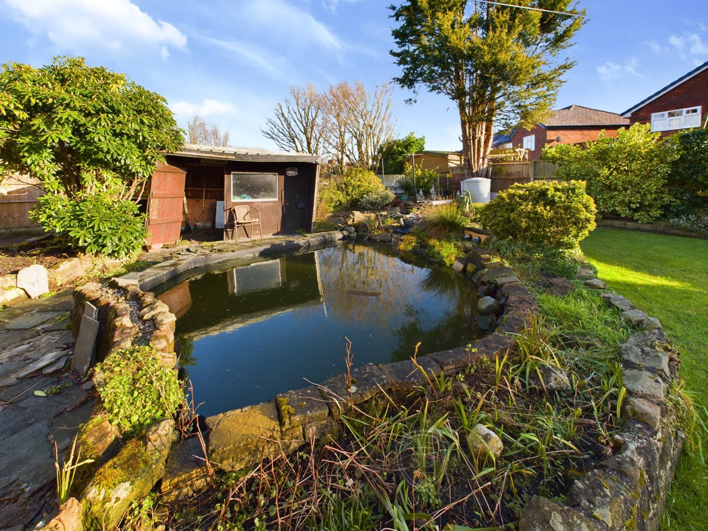 Inside, you'll find a welcoming porch and entrance hallway, leading into the heart of the home. Two spacious living rooms offer additional flexibility, with one that can be classed as a bedroom. There are two comfortable bedrooms, perfect for relaxation and rest, a family bathroom and kitchens. Externally, the front of the property boasts off-road parking provided by a circular driveway and a convenient garage to the side. To the rear, an expansive garden awaits, featuring a large pond that adds to the charming outdoor space.