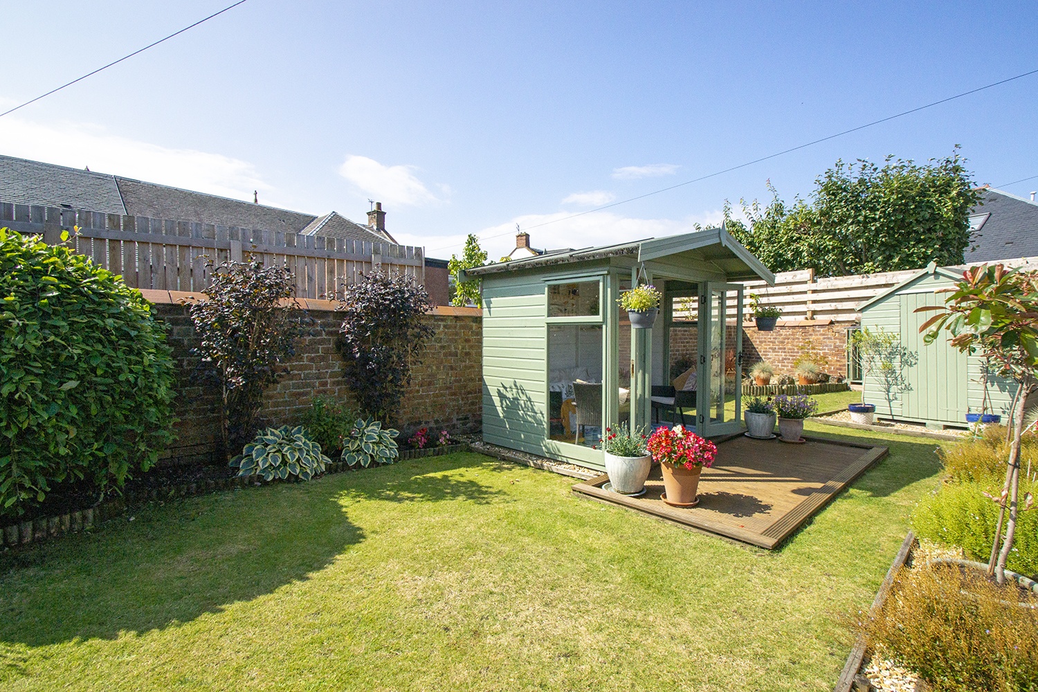 The property further benefits from its own landscaped garden area to the front with lawn and established border. To the rear there is a lovely private garden area with summer house and shed. This is an ideal spot for relaxation and entertainment. There is also a shared drying area. The property also has two outbuildings which are currently used for storage but could possibly offer space for home office etc. Double glazing and gas central heating. This is a real gem of a property and must be viewed to be fully appreciated.