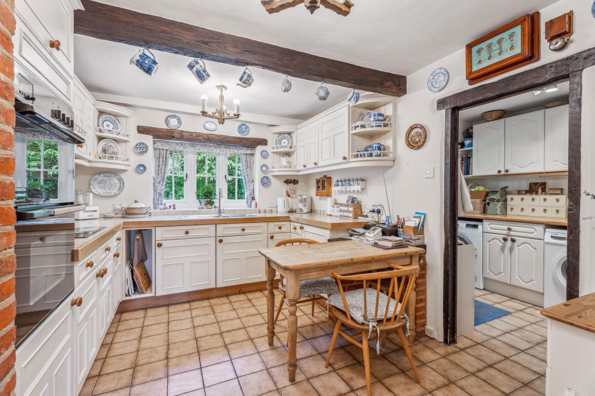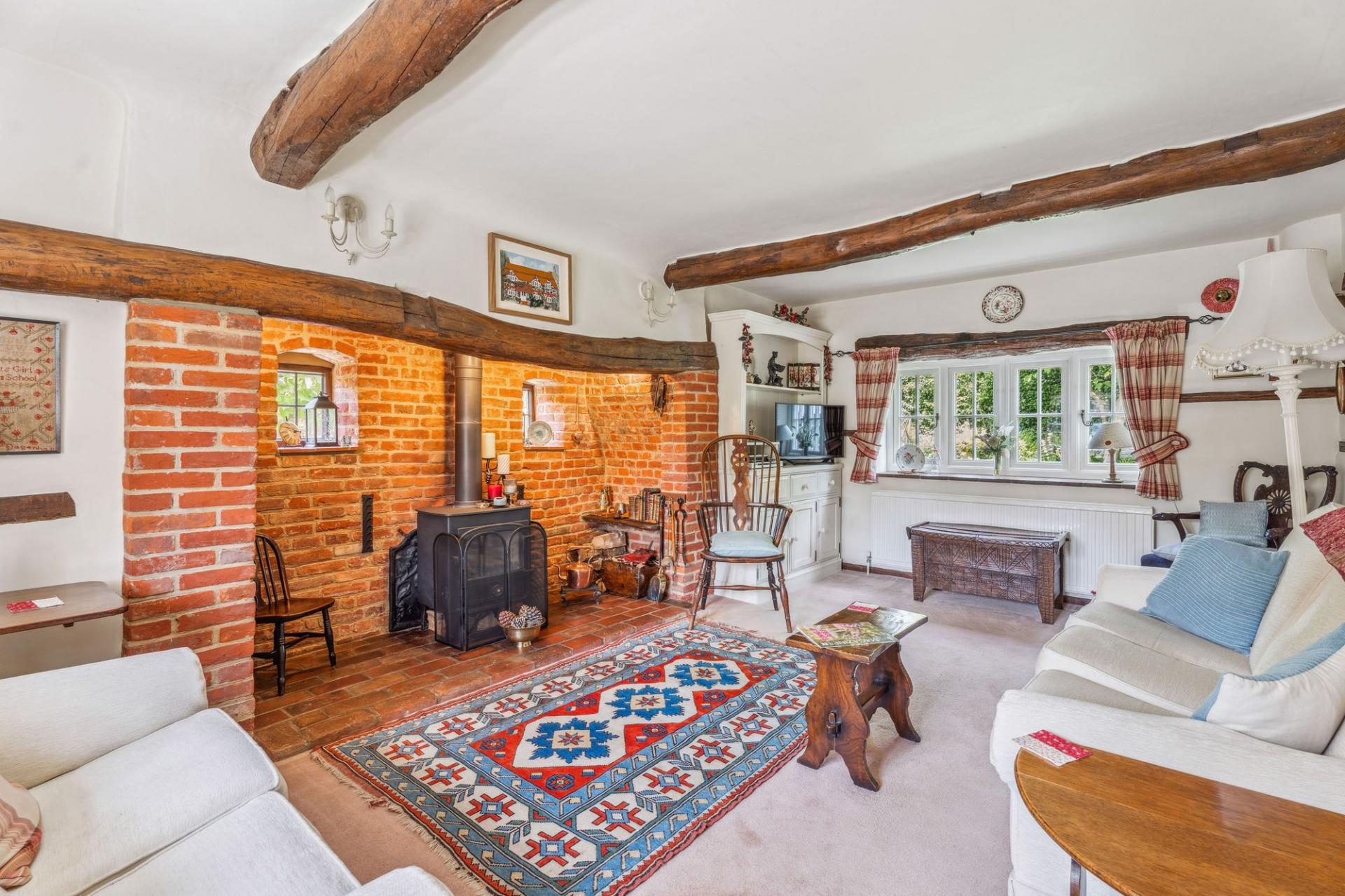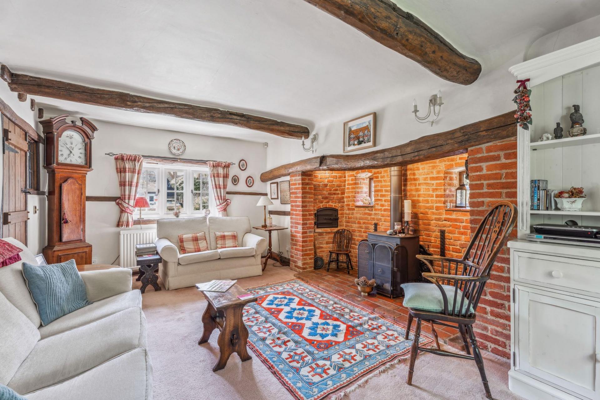 Set in a quiet cul-de-sac of just four cottages, in the idyllic hamlet of Speen, this beautiful home is accessed via a pretty path within the walled front garden and a period storm porch. The welcoming and spacious entrance hall leads to the reception rooms and has a handy cloakroom. The sitting room has a wonderful double aspect to both the front and rear of the property with a feature inglenook fireplace with log burner, bread oven and two leaded picture windows.