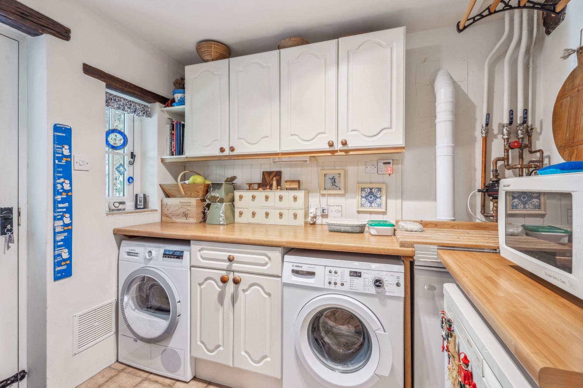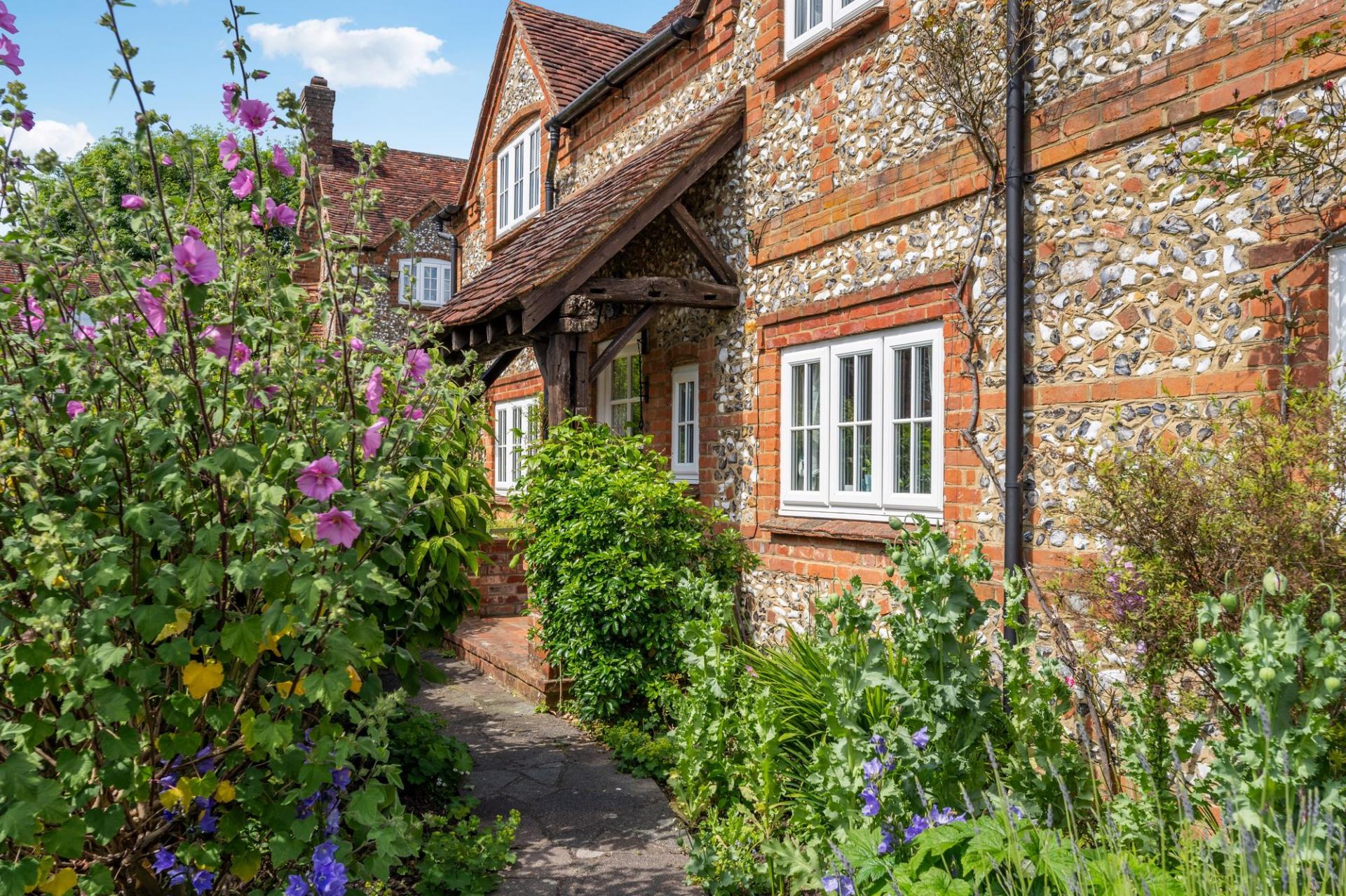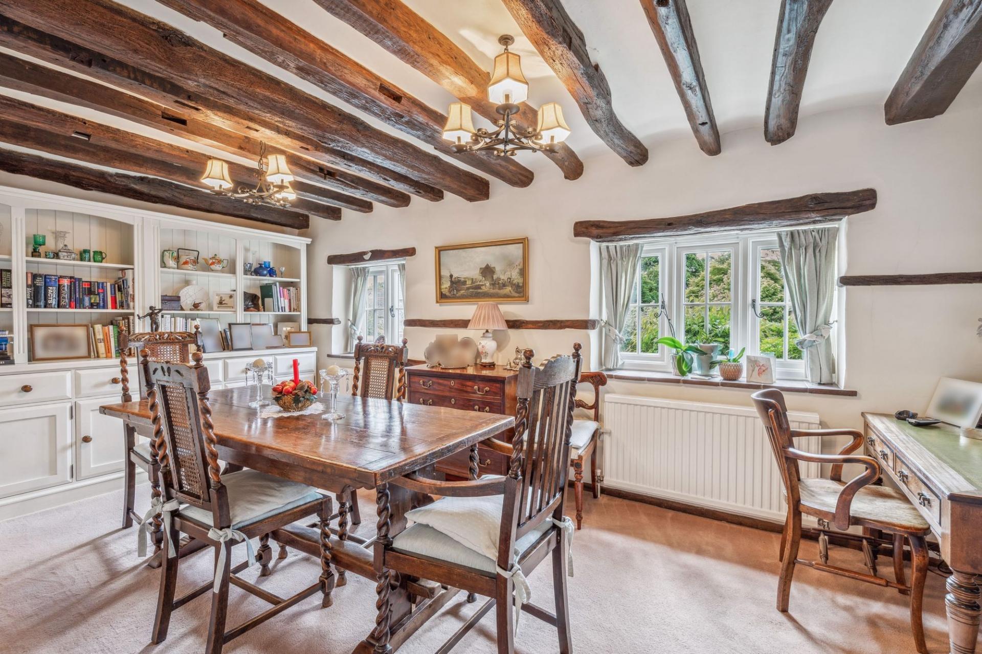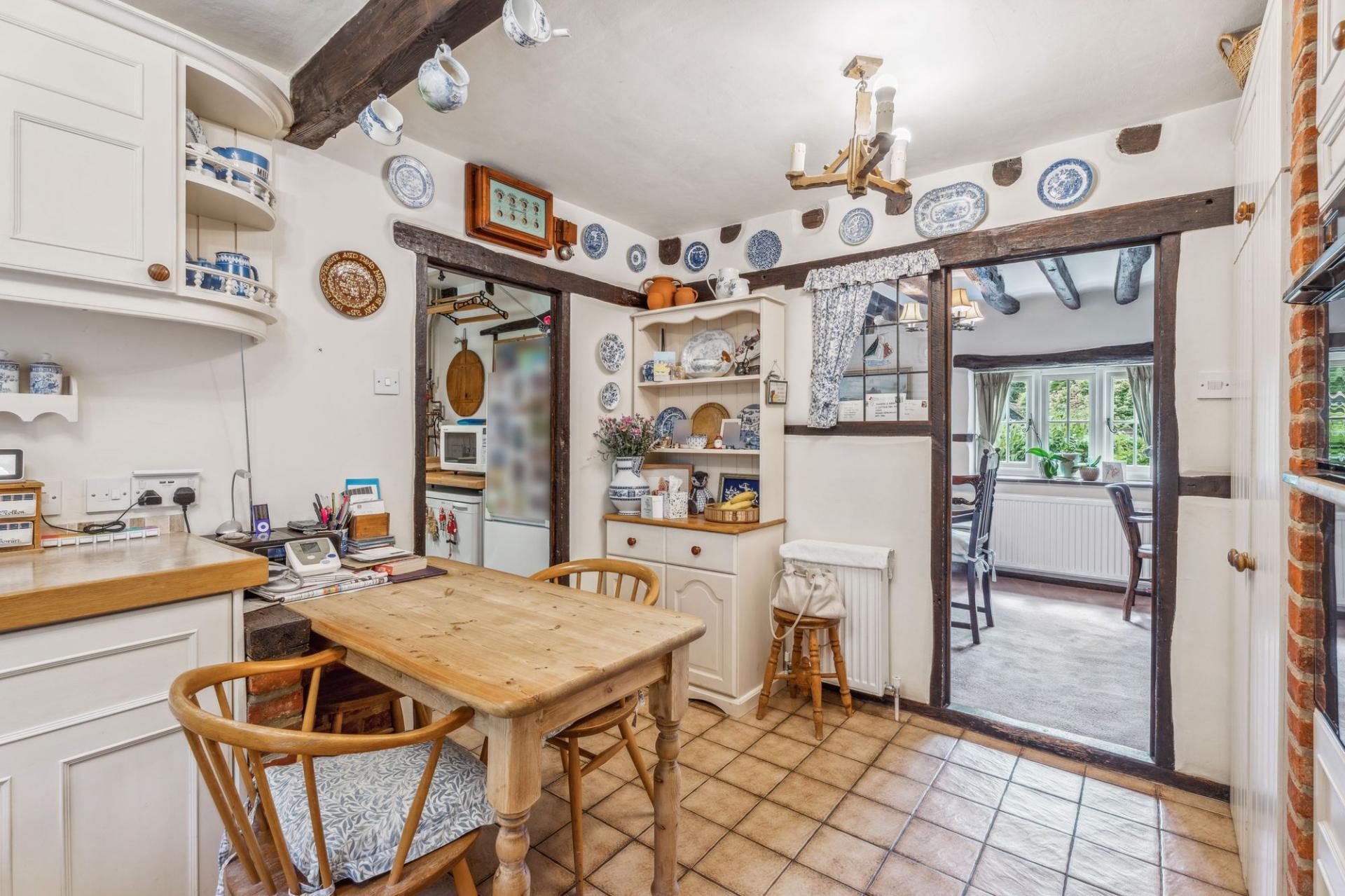 Set in a quiet cul-de-sac of just four cottages, in the idyllic hamlet of Speen, this beautiful home is accessed via a pretty path within the walled front garden and a period storm porch. The welcoming and spacious entrance hall leads to the reception rooms and has a handy cloakroom. The sitting room has a wonderful double aspect to both the front and rear of the property with a feature inglenook fireplace with log burner, bread oven and two leaded picture windows.