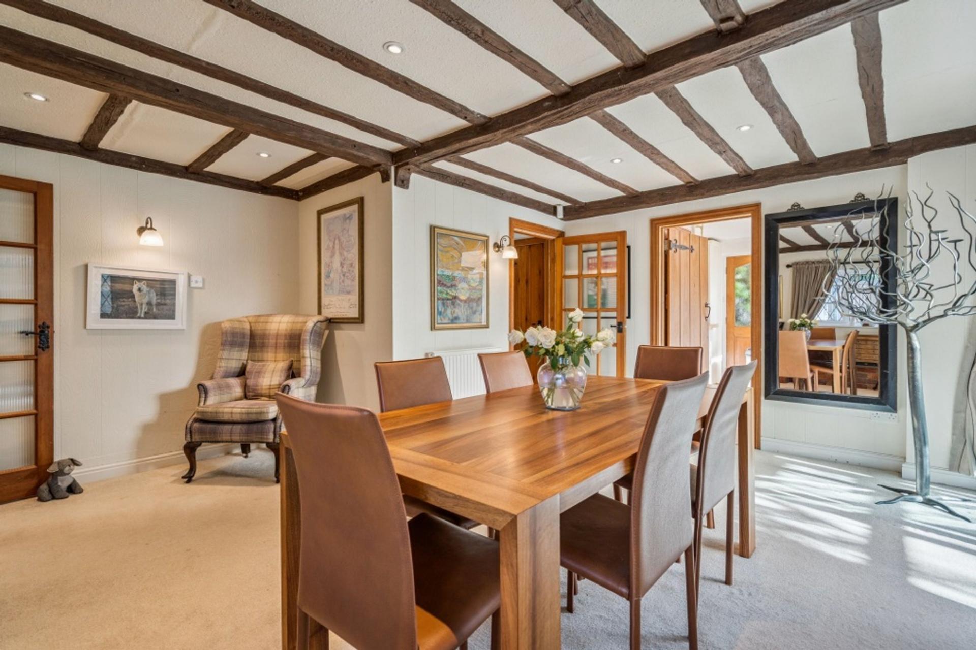Accessed across a gravel driveway providing ample parking, an initial 'beamed' storm porch leads to an inner porch which in turn leads to an inner hallway. Two of the bedrooms are located to the front and enjoy the use of the family bathroom with a three piece white suite including bath. The property then flows seamlessly through to a beamed dining room with access to a wonderful conservatory. Also to the rear is a country style kitchen with space for a breakfast table and doors out to the cottage garden.