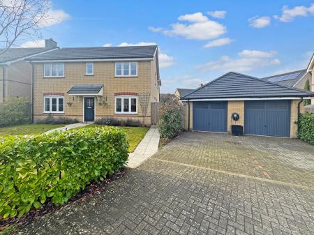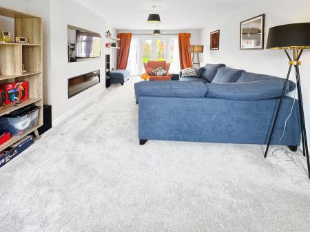 The property is complemented by attractive gardens to both the front and rear. To the front, there is off-road parking positioned in front of the double garage, alongside a neatly lawned area and a pathway leading to the main entrance.