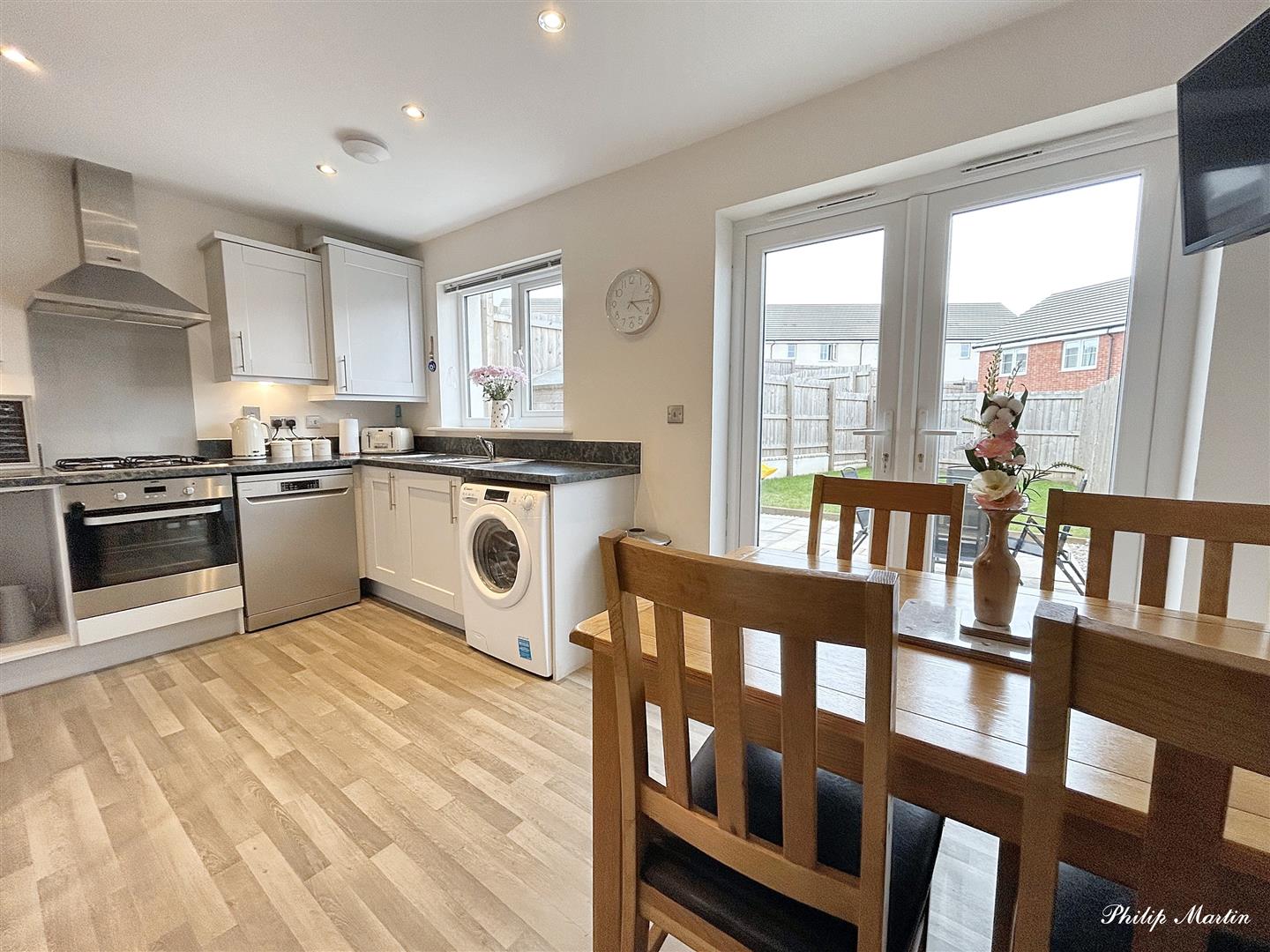 Kitchen/Dining Room - 4.51 x 2.66 (14'9" x 8'8") - Fantastic bright space perfect for family entertaining. A range of eye and base level kitchen units with built in oven, gas hob and stainless steel extractor fan above. Inset metal sink and drainer with stainless steel mixer tap. Plumbing for both dishwasher and washing machine in addition to space for a large fridge/freezer. Double glazed uPVC window with views over the rear garden. Double glazed uPVC French Doors leading to the rear garden makes the most of indoor-outdoor living. Single wall mounted radiator.