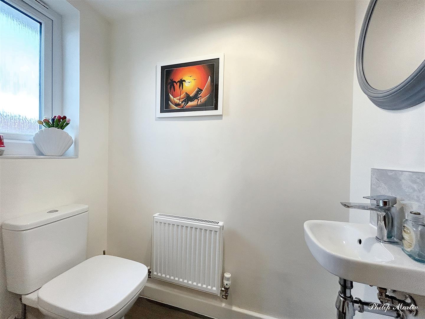Cloak Room - W.C. and hand wash basin. Small wall mounted radiator. Frosted window to the front aspect.