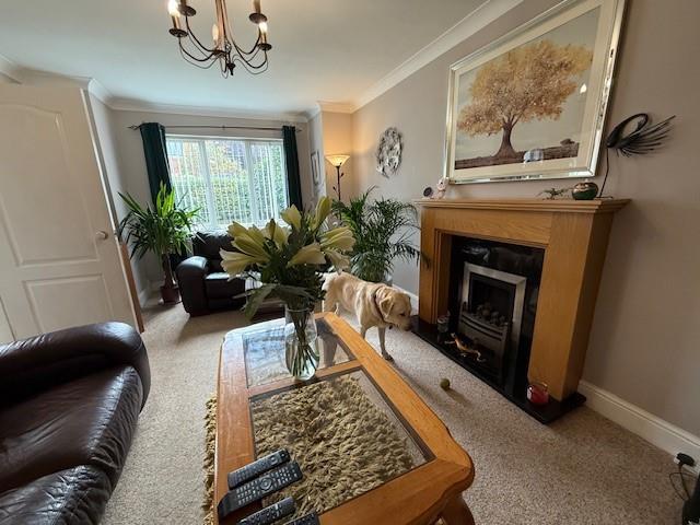 Lounge - 3.46 x 5.16 (11'4" x 16'11") - Upvc window to front aspect, gas fire with timber surround and central heating radiator.