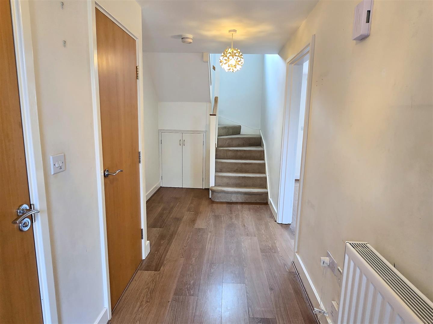 Entrance Hallway - 20' 4" x 6' 6" (6.2m x 1.98m) - uPVC double glazed front door. Staircase to first floor with under stairs storage cupboard. Radiator. Wood laminate flooring.