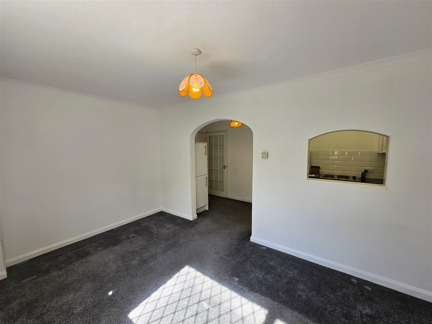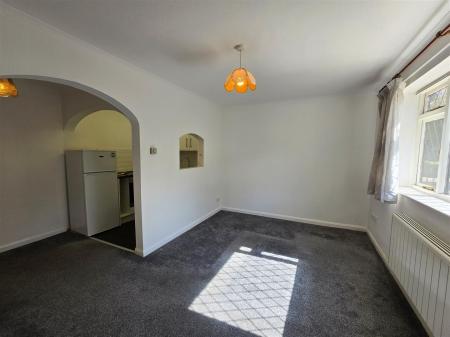 Range of modern fitted wall, base and drawer units with work surfaces incorporating sink unit and built-in electric ceramic hob and electric oven below. Free-standing washing machine and fridge/freezer. Arched window opening to Lounge area and open archway to:
