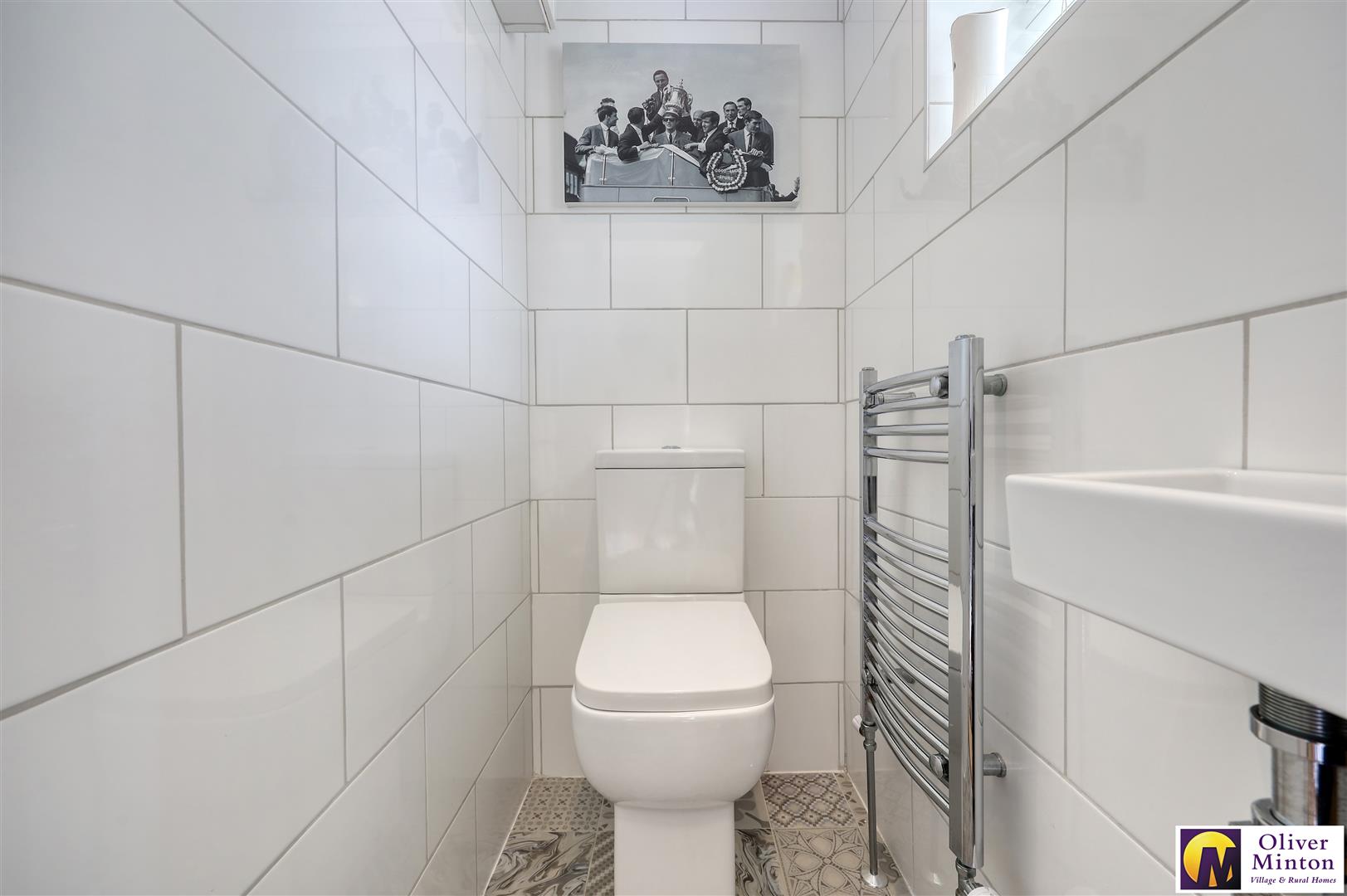 Cloakroom - . - White suite comprising low level flush WC and wash hand basin. Radiator. Double glazed obscure window to front.