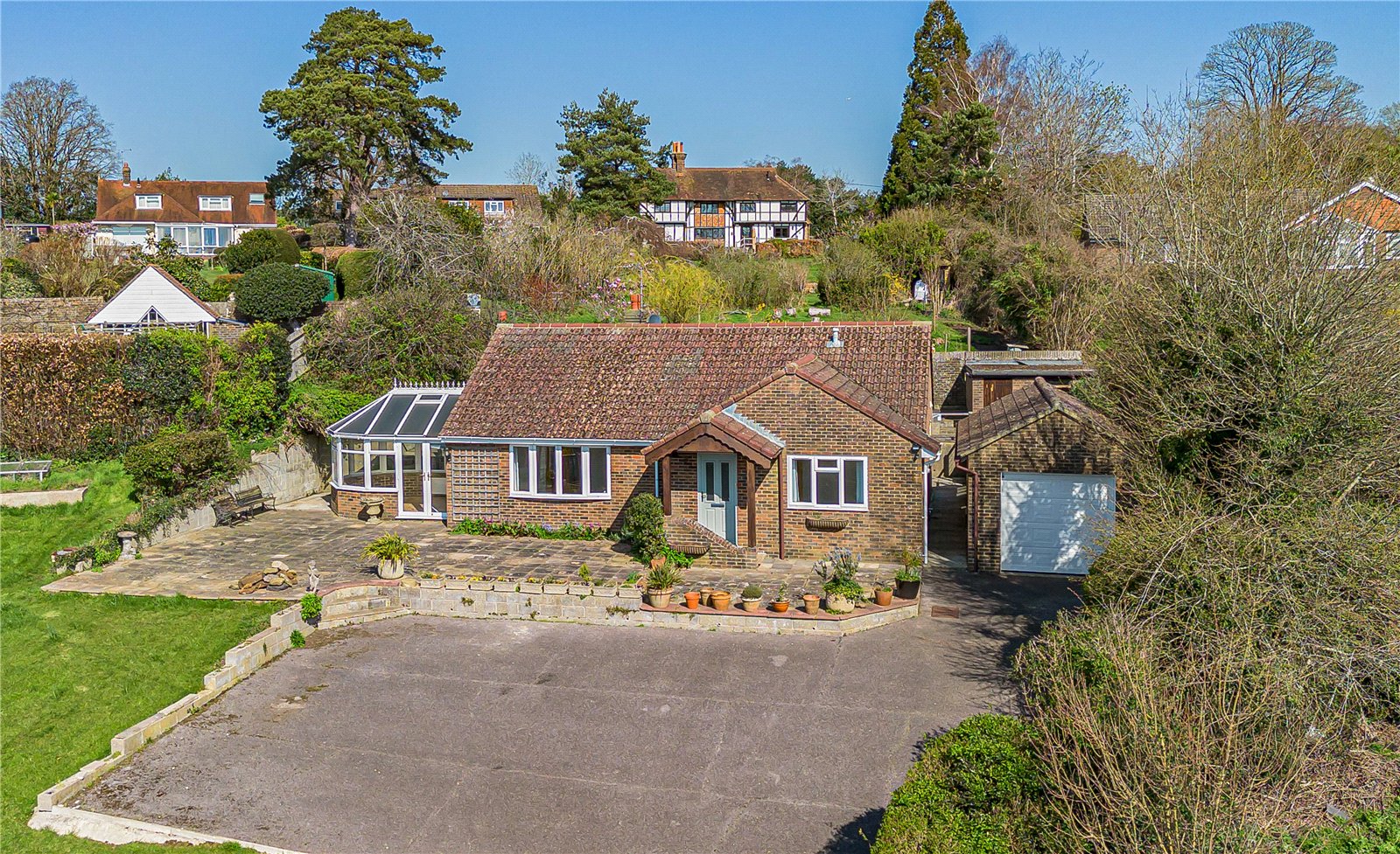 A very special opportunity : a detached, updated bungalow in a prime, elevated location up its own private drive with wo...