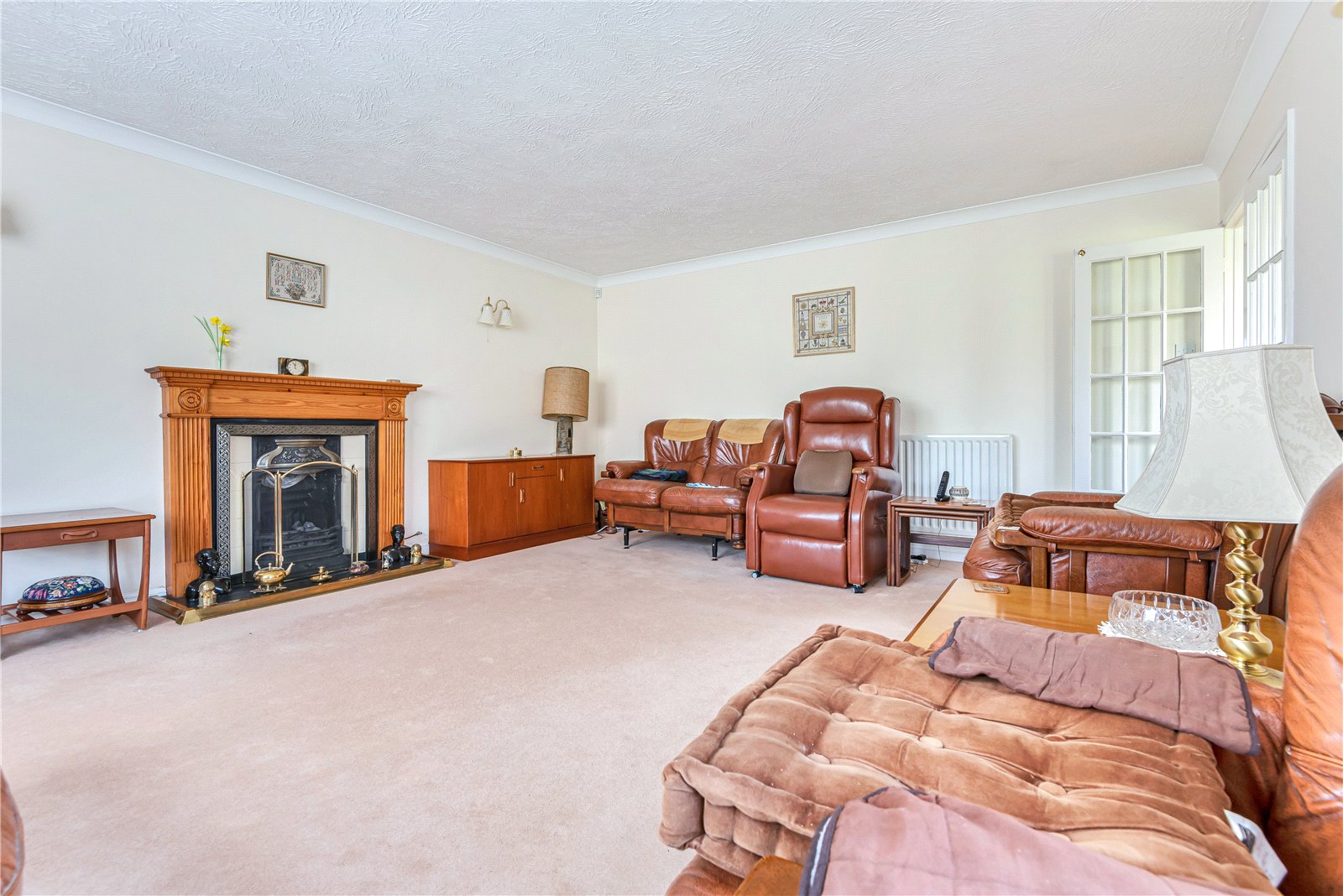 Sitting Room : Delightful square formal reception room with feature fireplace with ornamental surround and hearth and fitted with a coal effect gas fire. Television point, wall light points and 2 radiators.