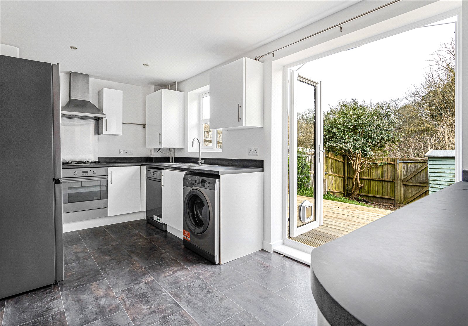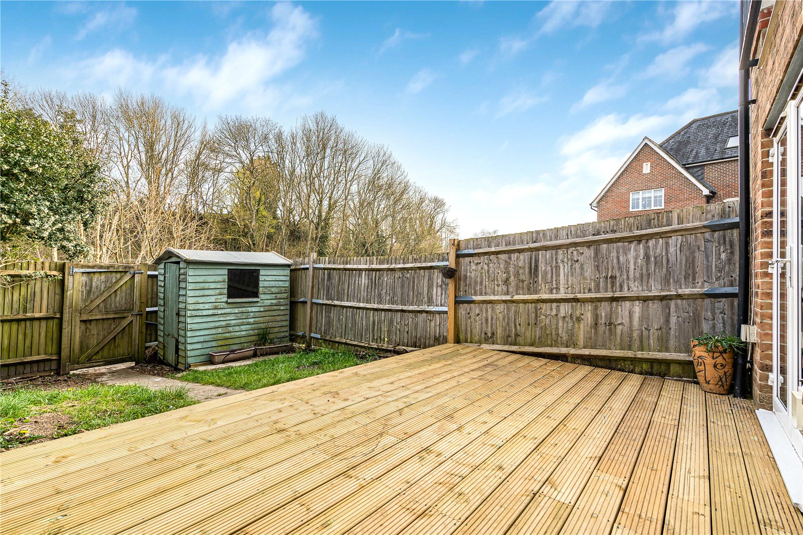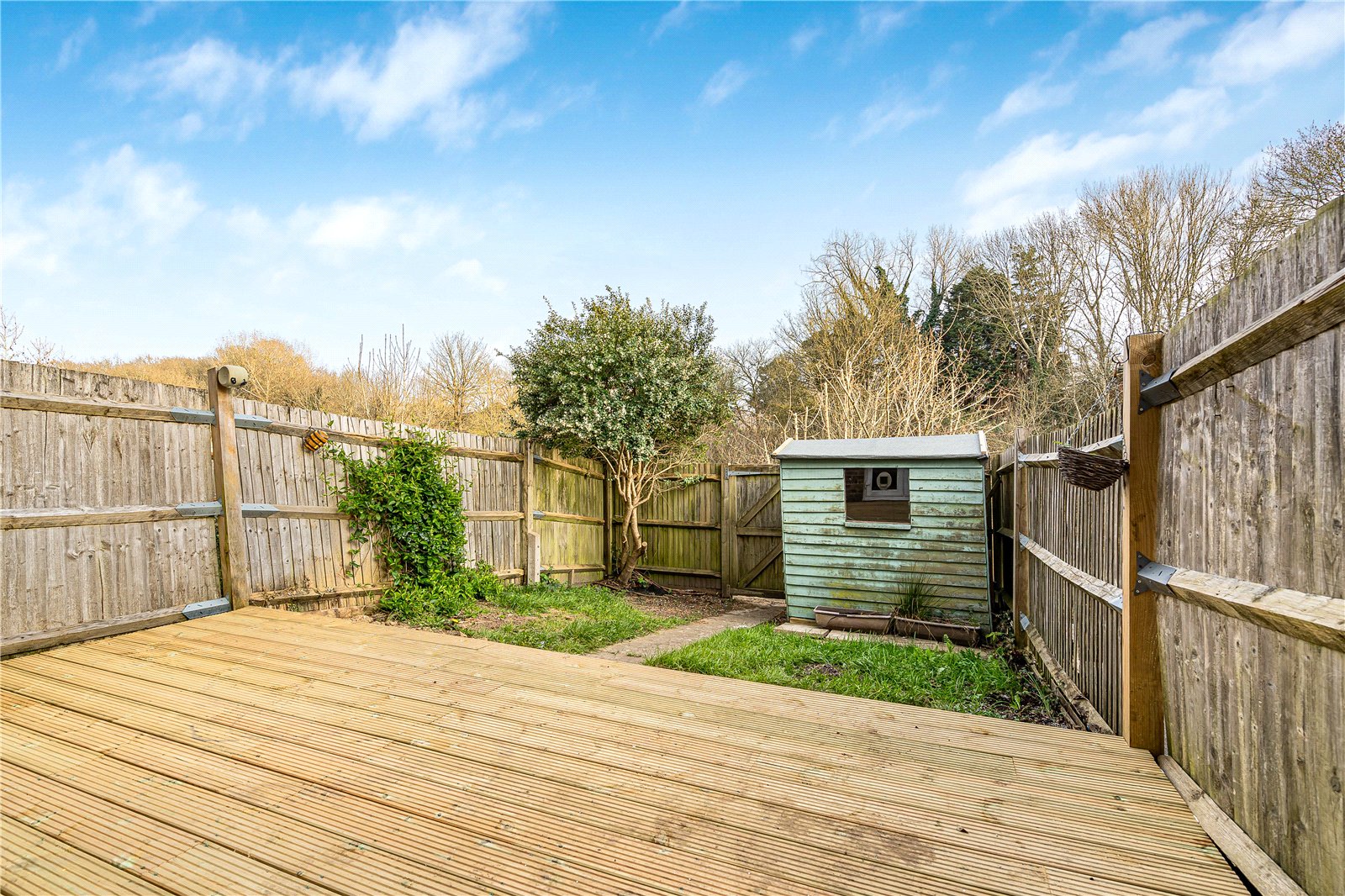 Garden : The property features and enclosed rear garden with gate and boasts a new, wide timber sun deck with access from the kitchen/ dining room. The lower garden is laid to lawn with beds.