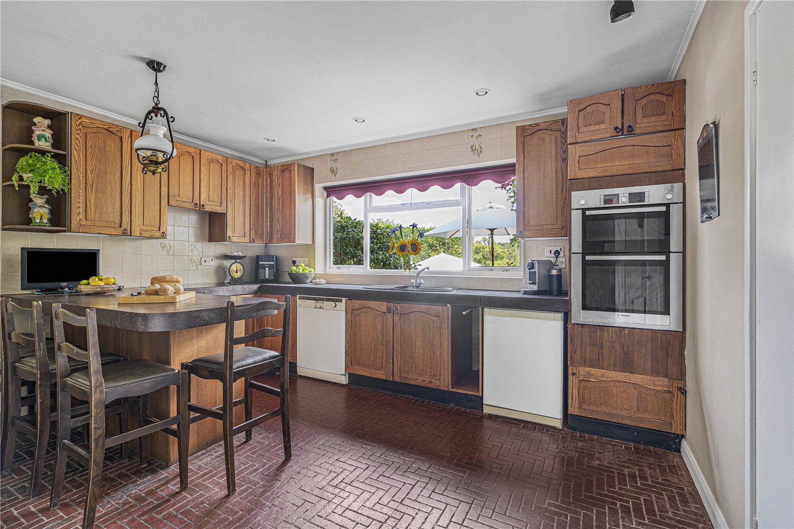 Kitchen : Good sized family kitchen with breakfast bar comprising matching wall and base units with double oven ,dishwasher and fridge. Range of worktops with sink unit, induction hob and shelving. Radiator and door to :