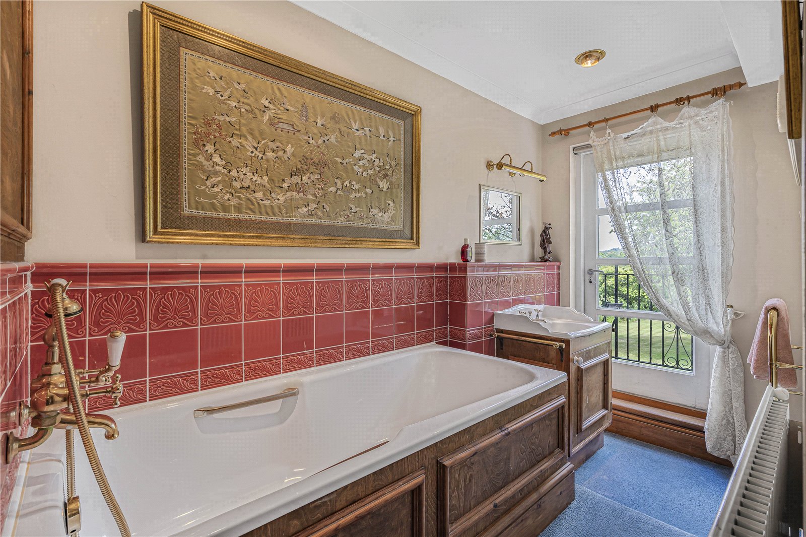 External door leading to shared balcony overlooking beautiful gardens and exceptional views.