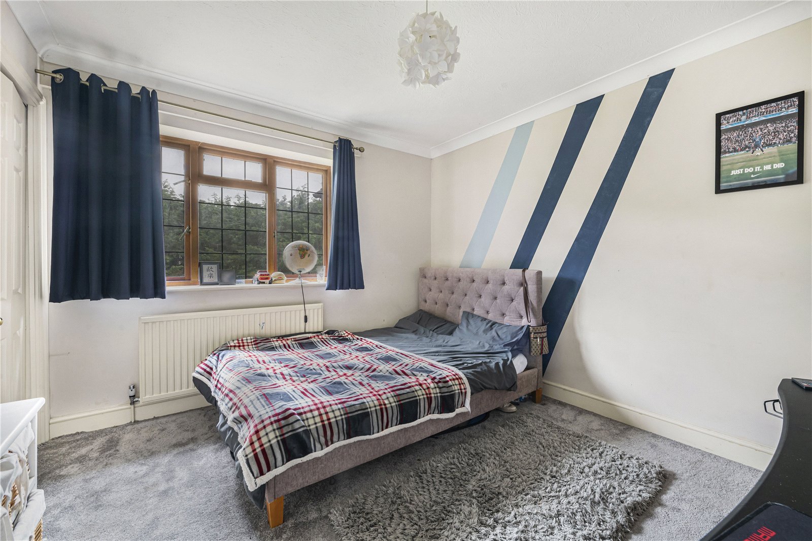 Bedroom 2 : Large guest bedroom with triple aspect and deep storage cupboard (offering potential subject to plumbing and any necessary consents for a shower Room). Radiator and light point.
