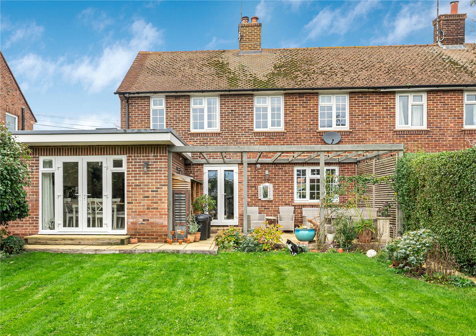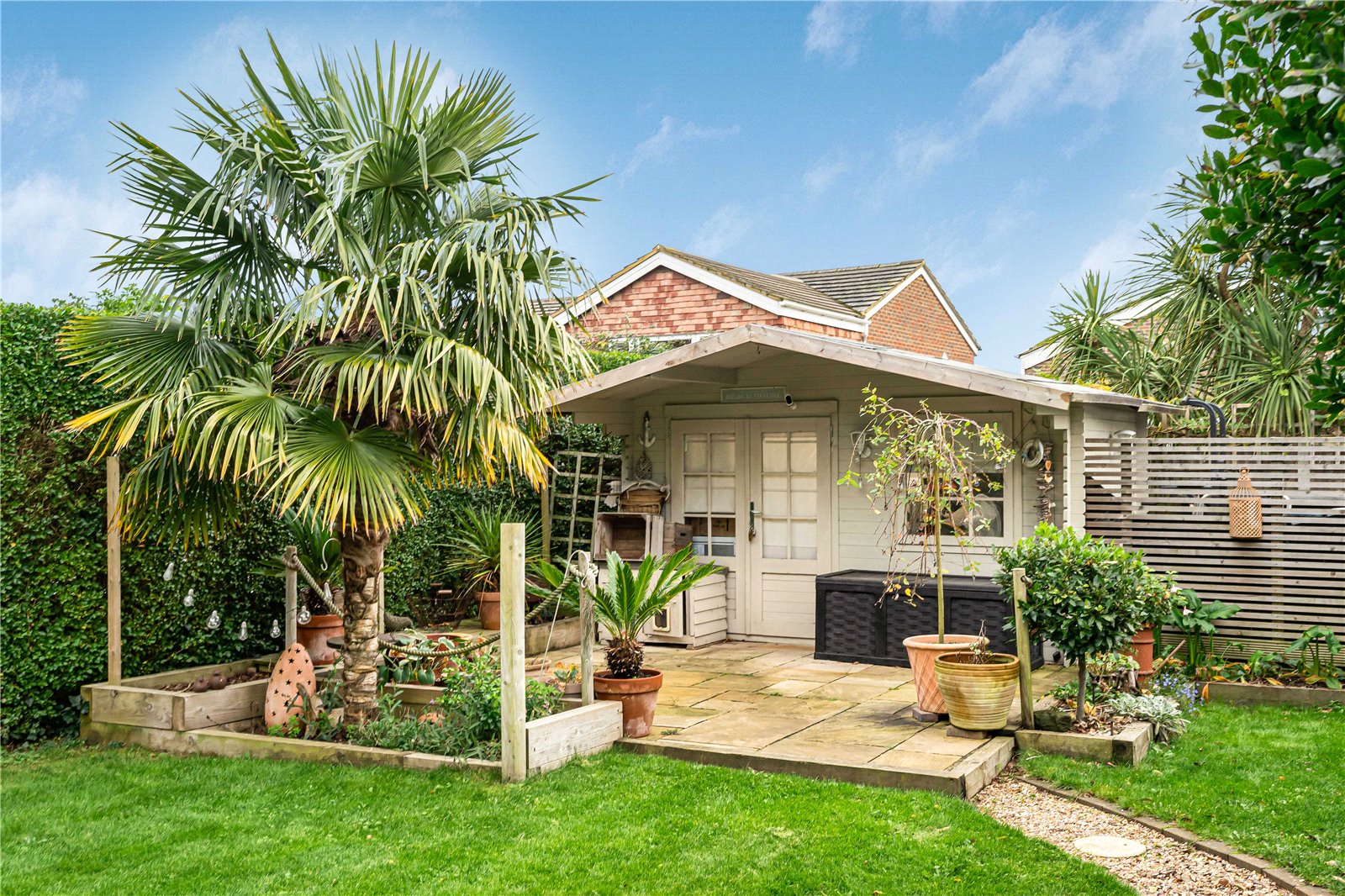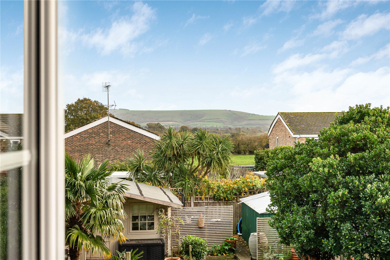 To the side is a further area of garden with a metal storage shed and greenhouse and an additional area enclosed by a trellis fence panel. The garden is well screened for privacy and from the terrace there are glimpse views of the South Downs.