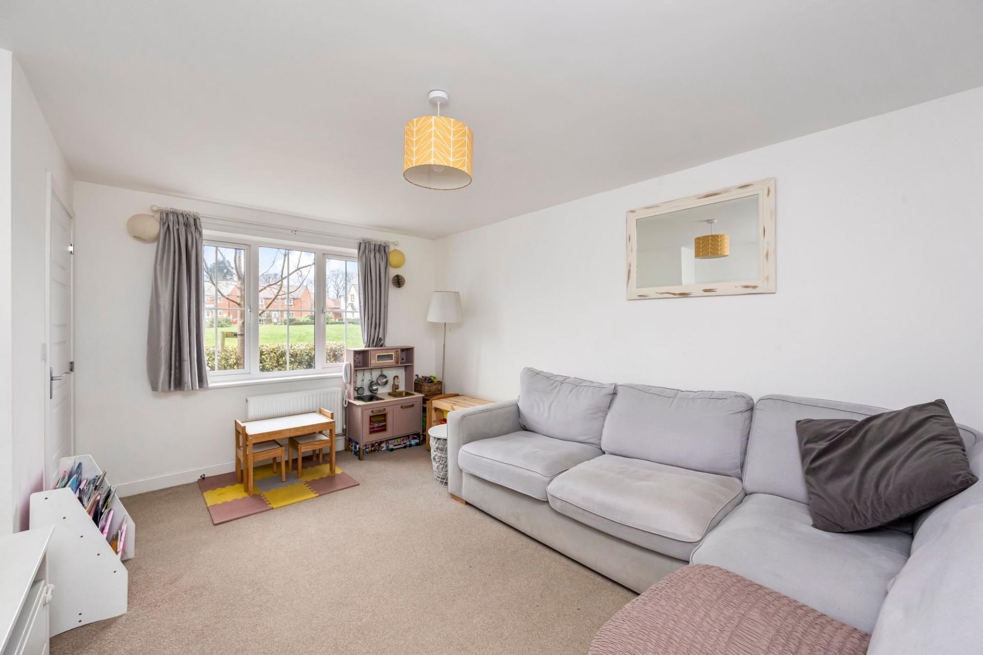 - Spacious living room overlooking the central green