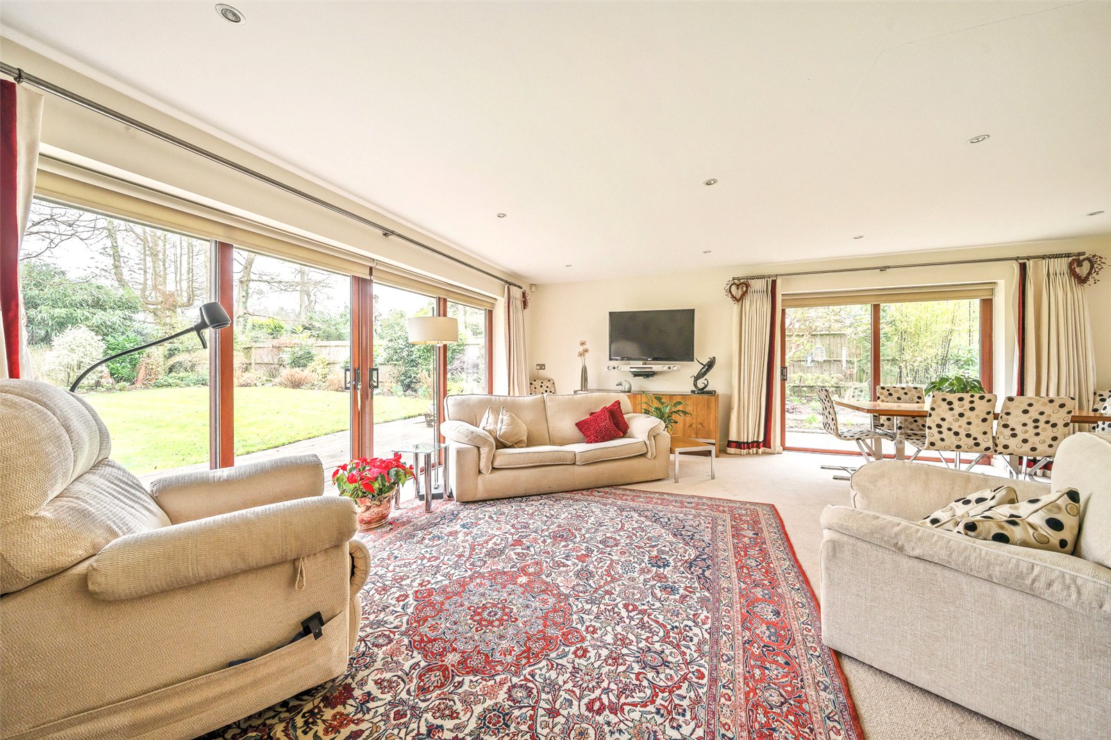 A spacious bunglaow (approx 2,774 sq ft) in a small tranquil cul-de-sac with 4 double bedrooms, sizable reception rooms...