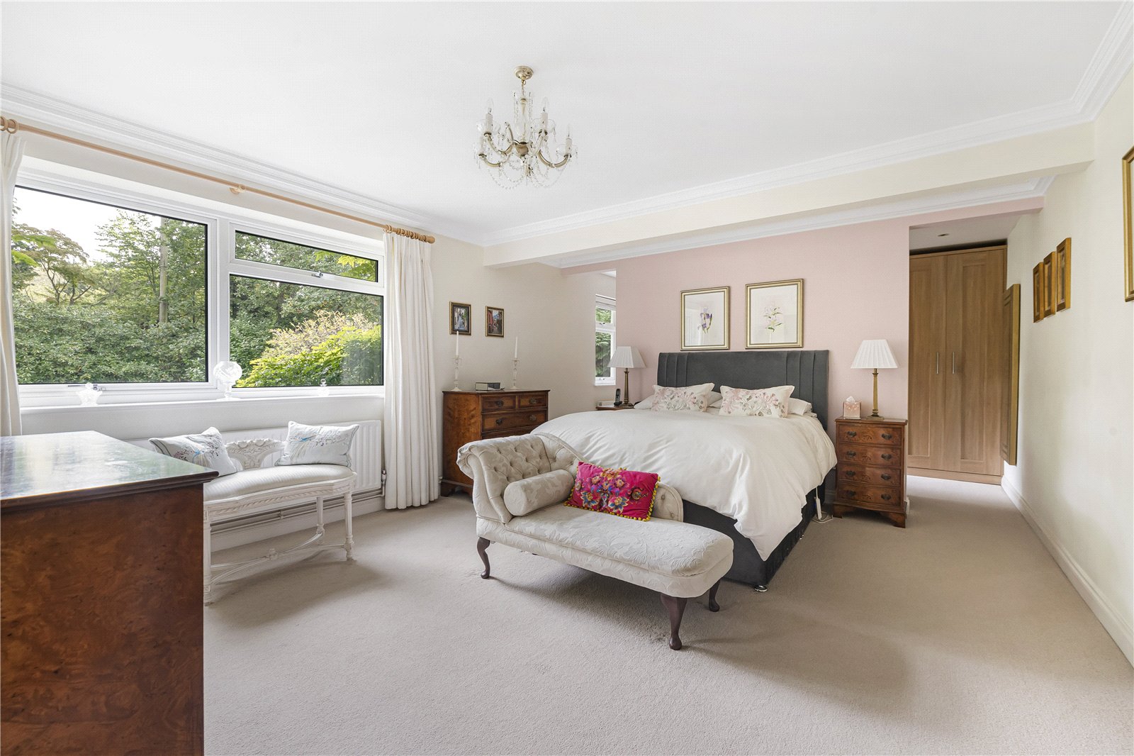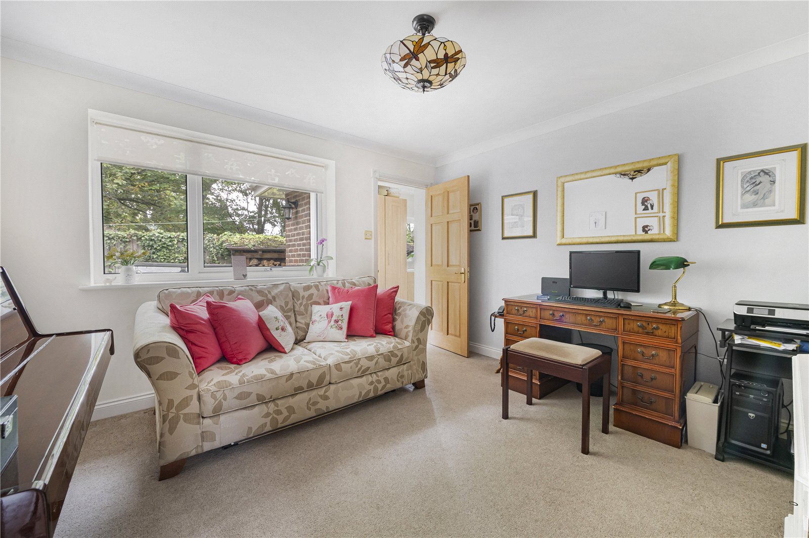 Garden: The front garden comprises a large area of lawn flanking the driveway with well screened borders with shrubs, trees and plants. From the drive a path to the side leads to a There is a generous shaped rear lawn with specimen tree and this leads to a hidden area of informal garden and copse at the rear. The boundaries are well screened and fenced.