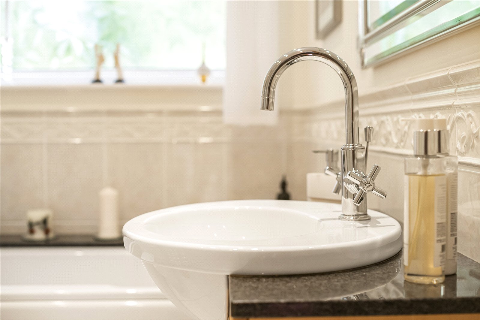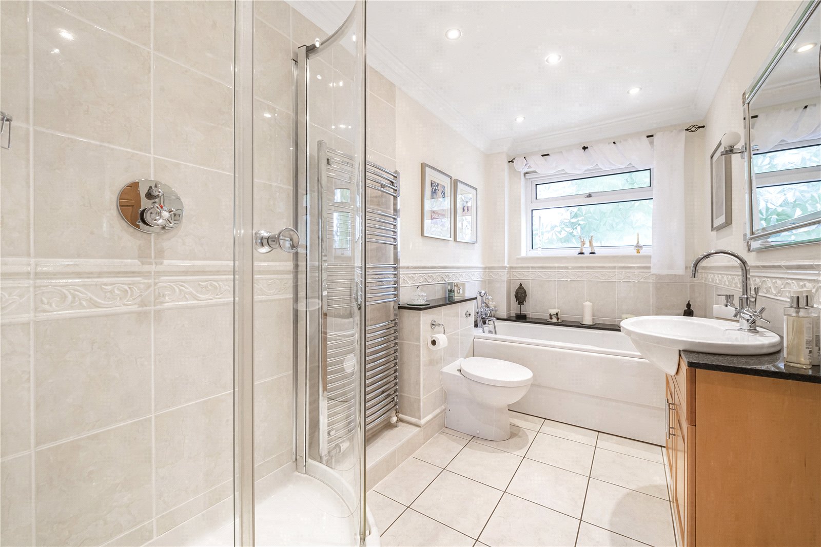 Bathroom : Comprising bath with mixer tap and shower attachment, WC with concealed cistern and dual wash hand basins. Shower, ladder radiator, downlights, underfloor electric heating and part tiled walls.