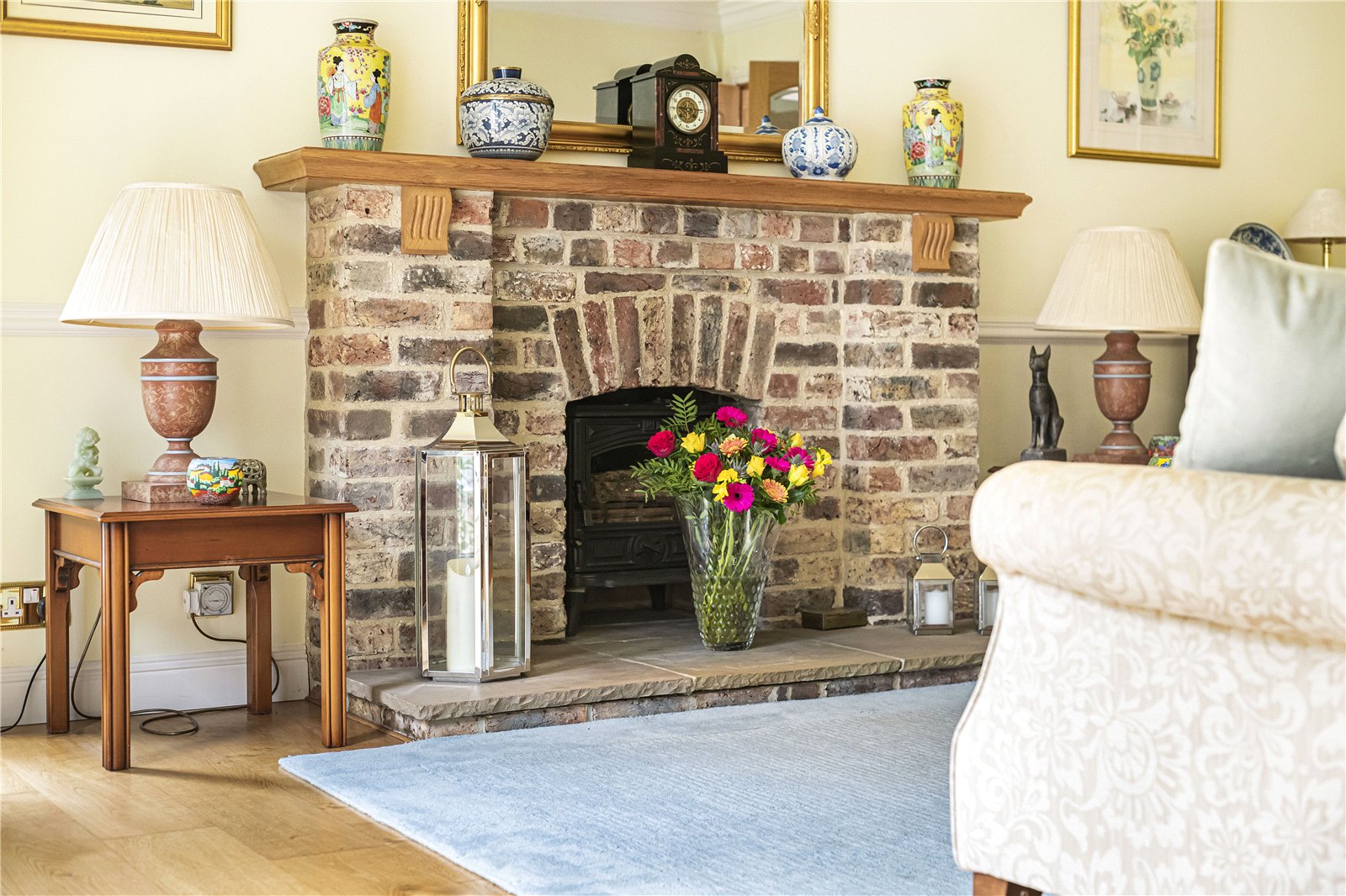 Sitting Room : Delightful, bright formal reception room overlooking the garden with oak floor, dado rail, brick fireplace with wood burning stove and oak mantle, radiator and double doors to the garden. Single door to outside, television and telephone points and down lights. Open through to: