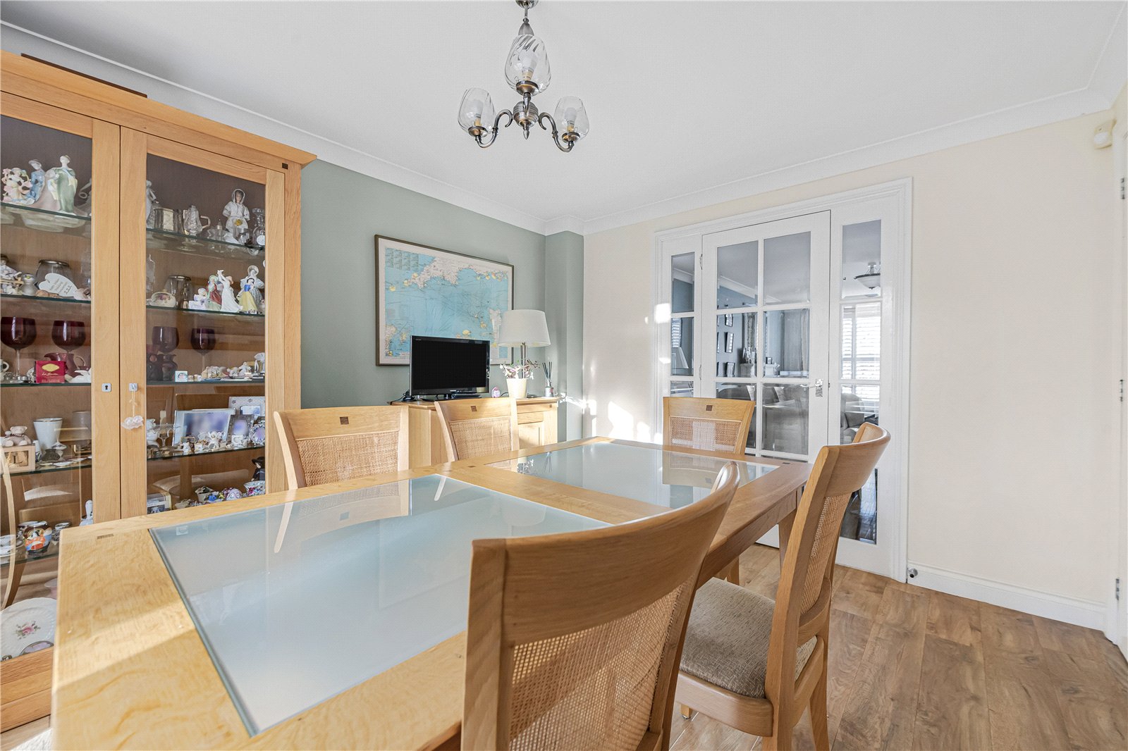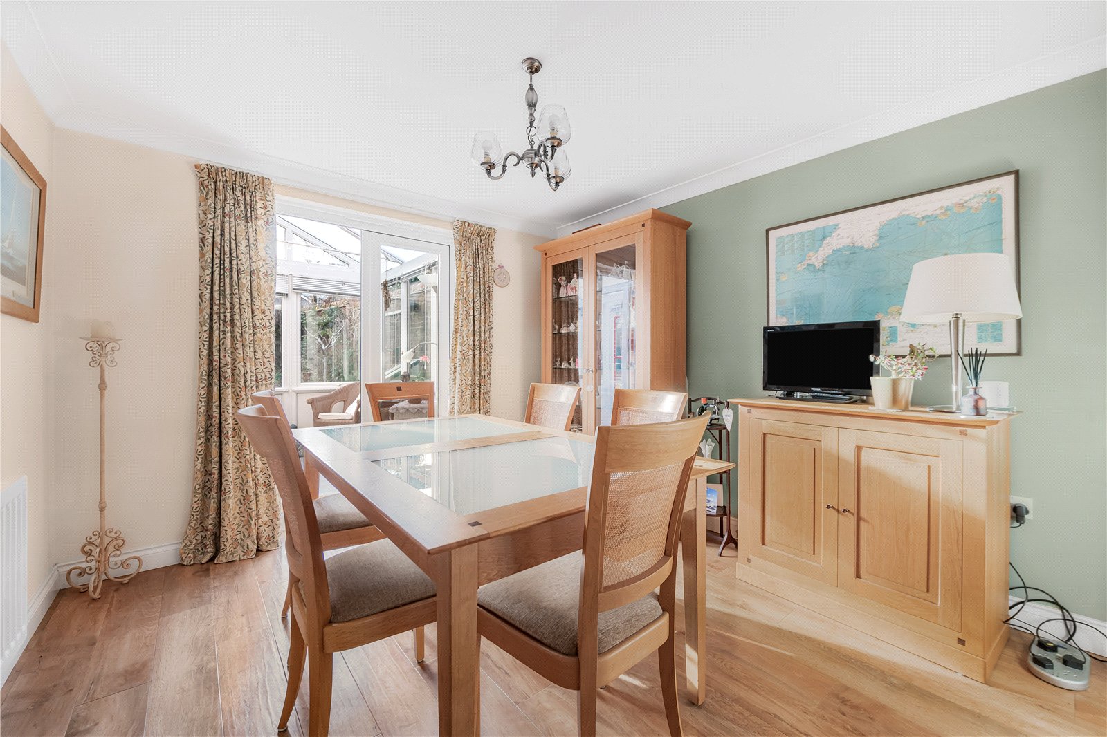 Dining Room : Good sized room with additional door to hall and doors to conservatory. Radiator and light point.