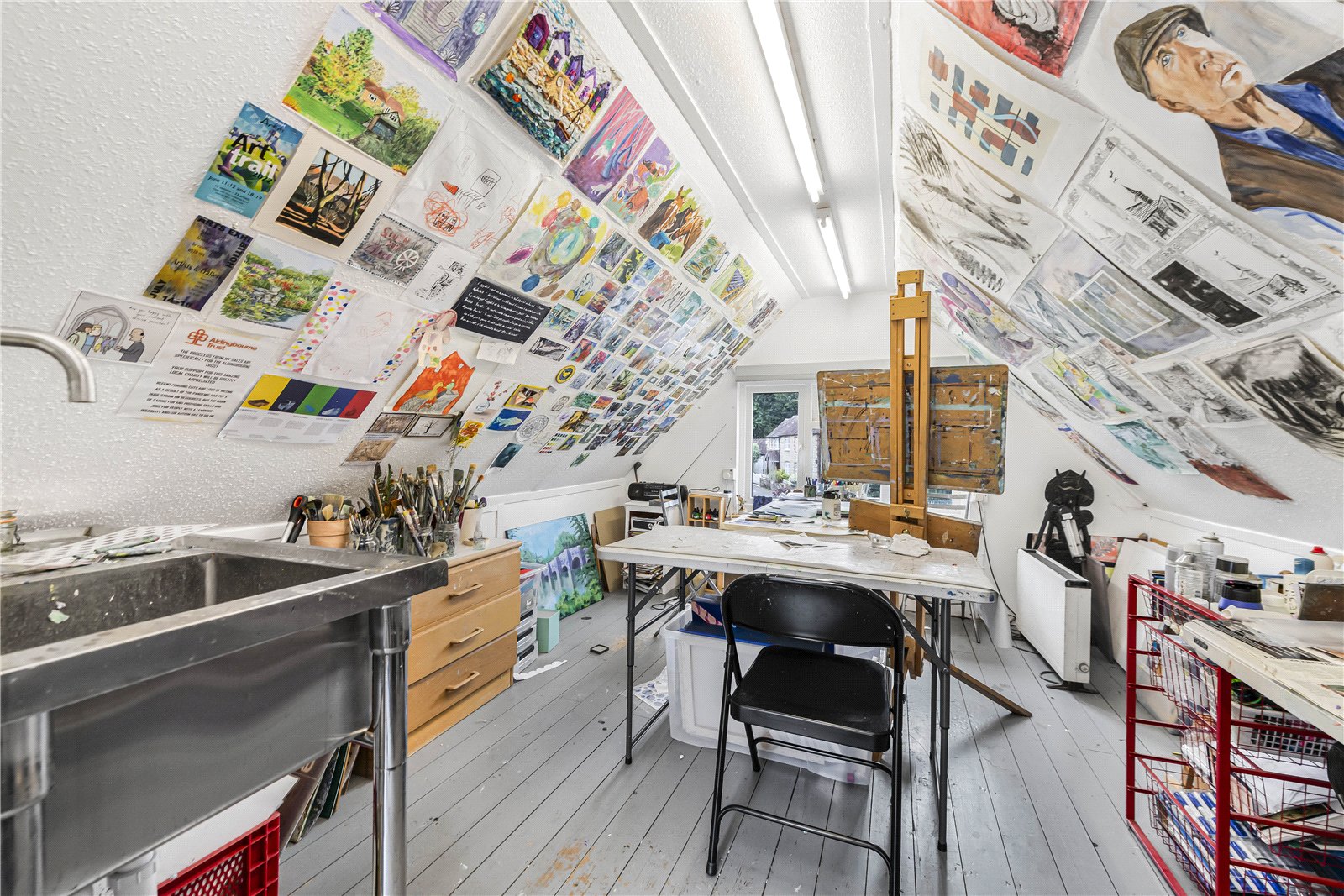 Studio / Hobbies Area : Approached by external staircase leading to a useful hobbies area with sink and cloakroom. Ideal art studio.
