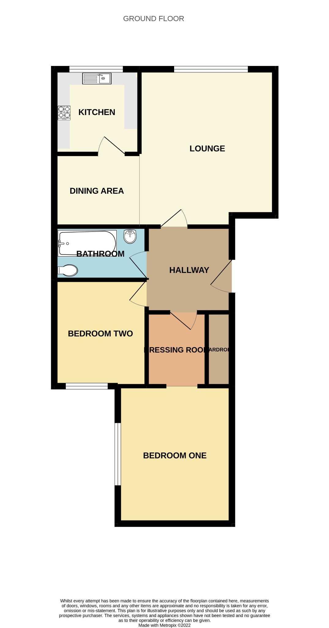 The property features two spacious double bedrooms, a dining area, a contemporary kitchen, and a dressing room connected to the main bedroom, along with an allocated parking space.