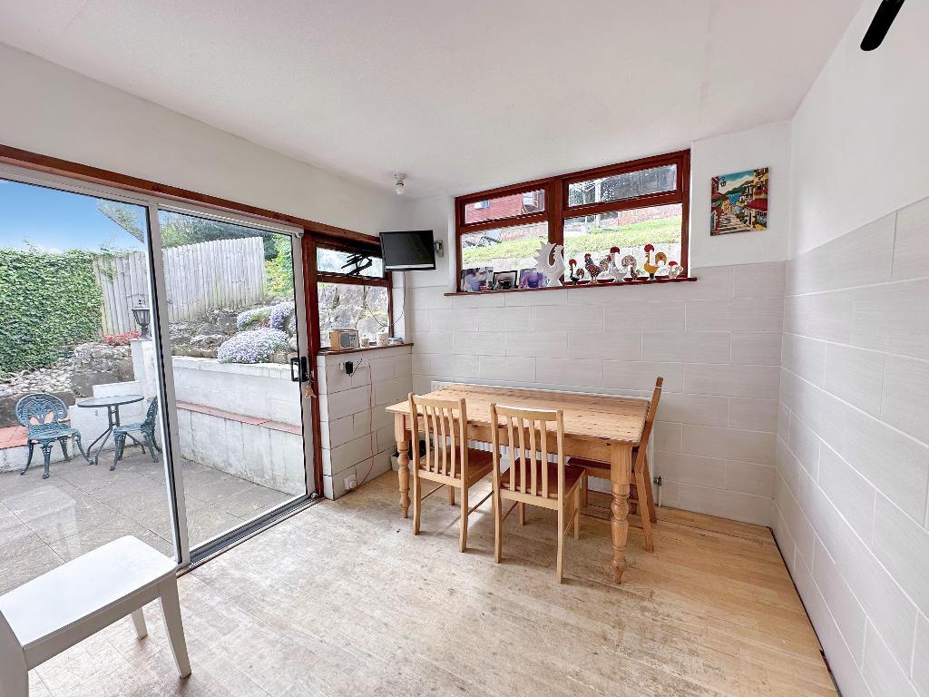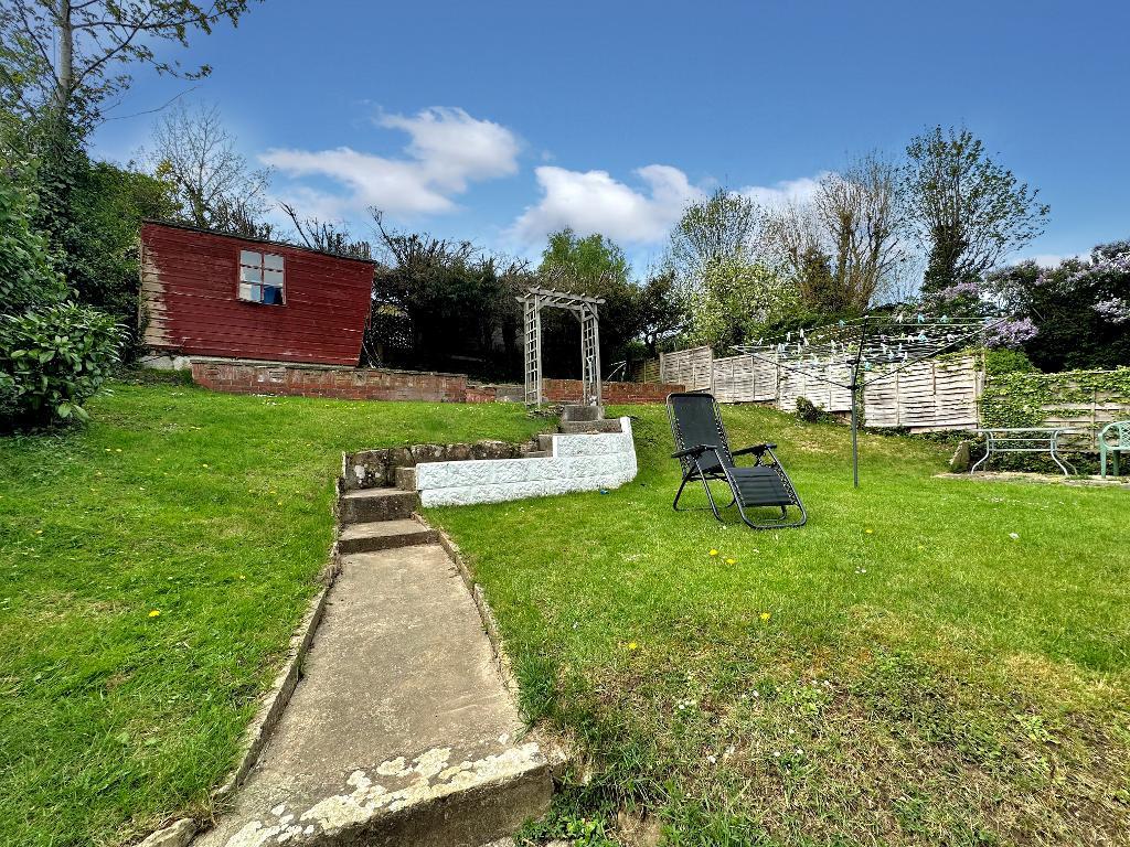 Externally to the rear is a nice secluded garden with side gated access, patio area with rockery and steps up to the lawn areas with garden shed and pleasant views. To the front is a garden area along with a garage which currently has no roof and will require modernisation.