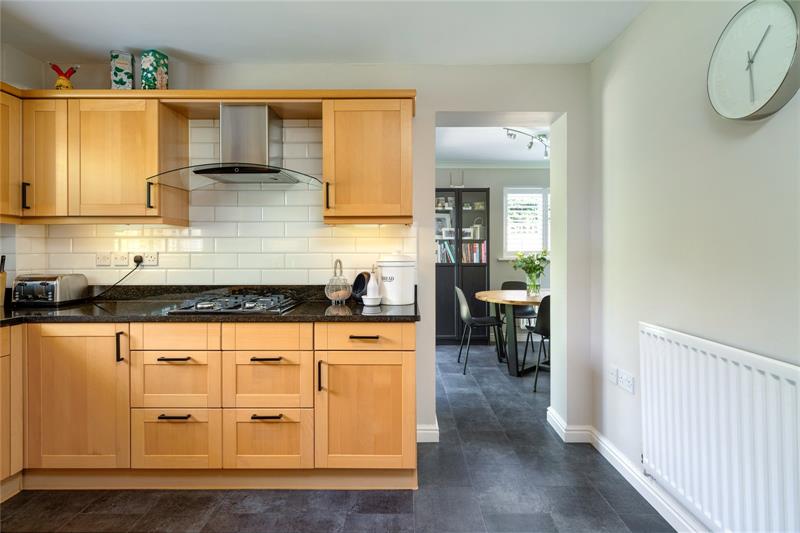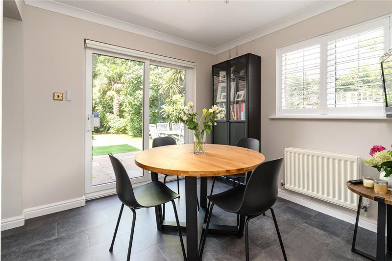 The refurbished kitchen features granite work surfaces, top of the range Bosch appliances, thoughtfully designed modern splashback tiling and Amtico flooring. If you require a more open plan living, the kitchen and dining room could easily be made into one large family space. With open access to the breakfast room, this double aspect room has been designed to offer delightful views of the exterior landscape, with sliding doors to the rear terrace, capturing the morning sun.