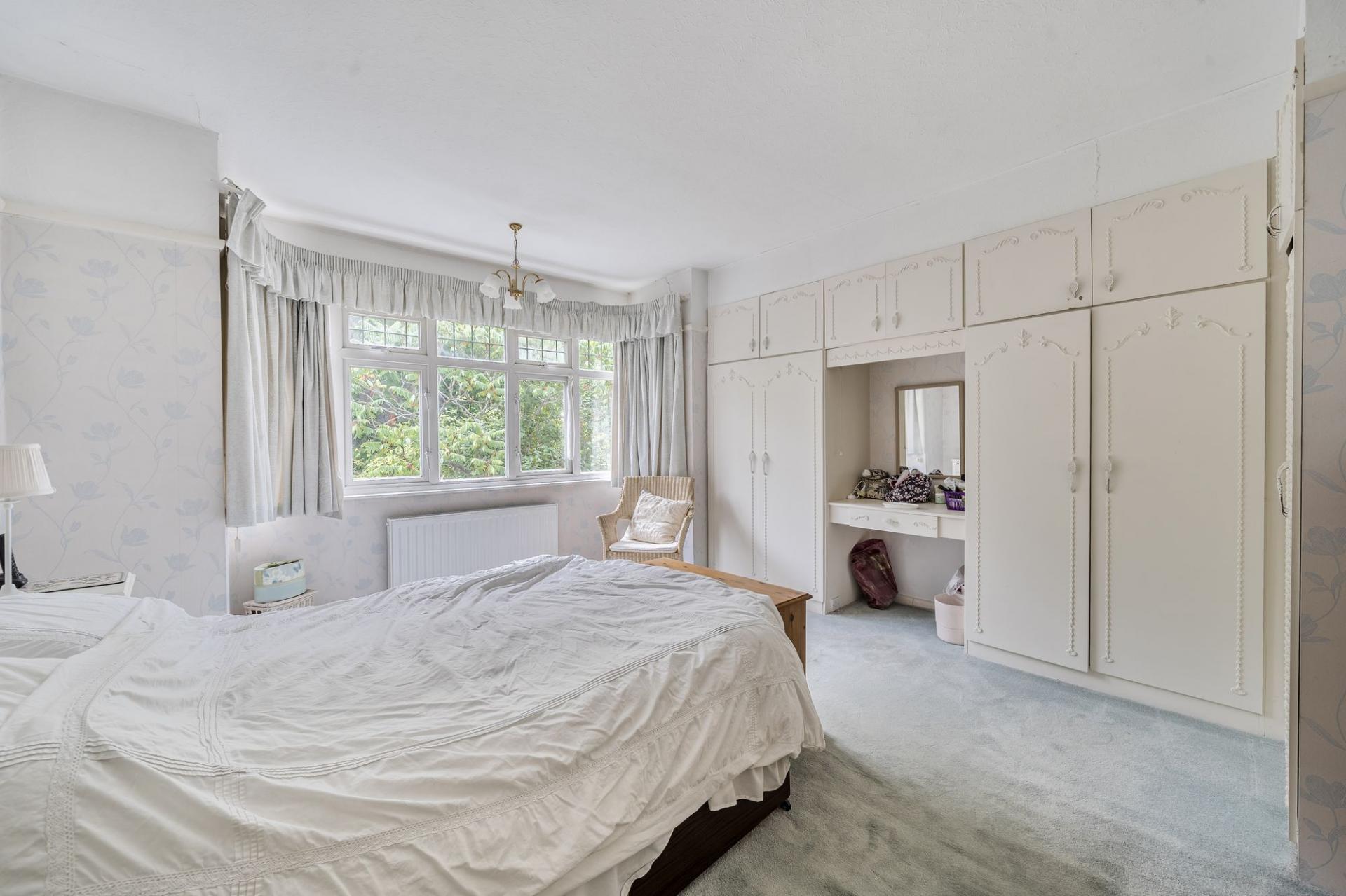 Upstairs, the first floor continues to impress with four well-sized bedrooms. The principal bedroom enjoys a bay window to the front, built-in wardrobes, and ample natural light. There are two additional double bedrooms, both providing generous proportions well-suited to family life, alongside a fourth single bedroom. Completing this level is a family bathroom, with a separate WC, offering the potential to remodel and update.
