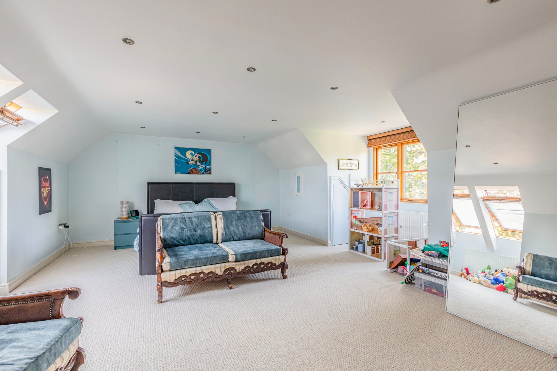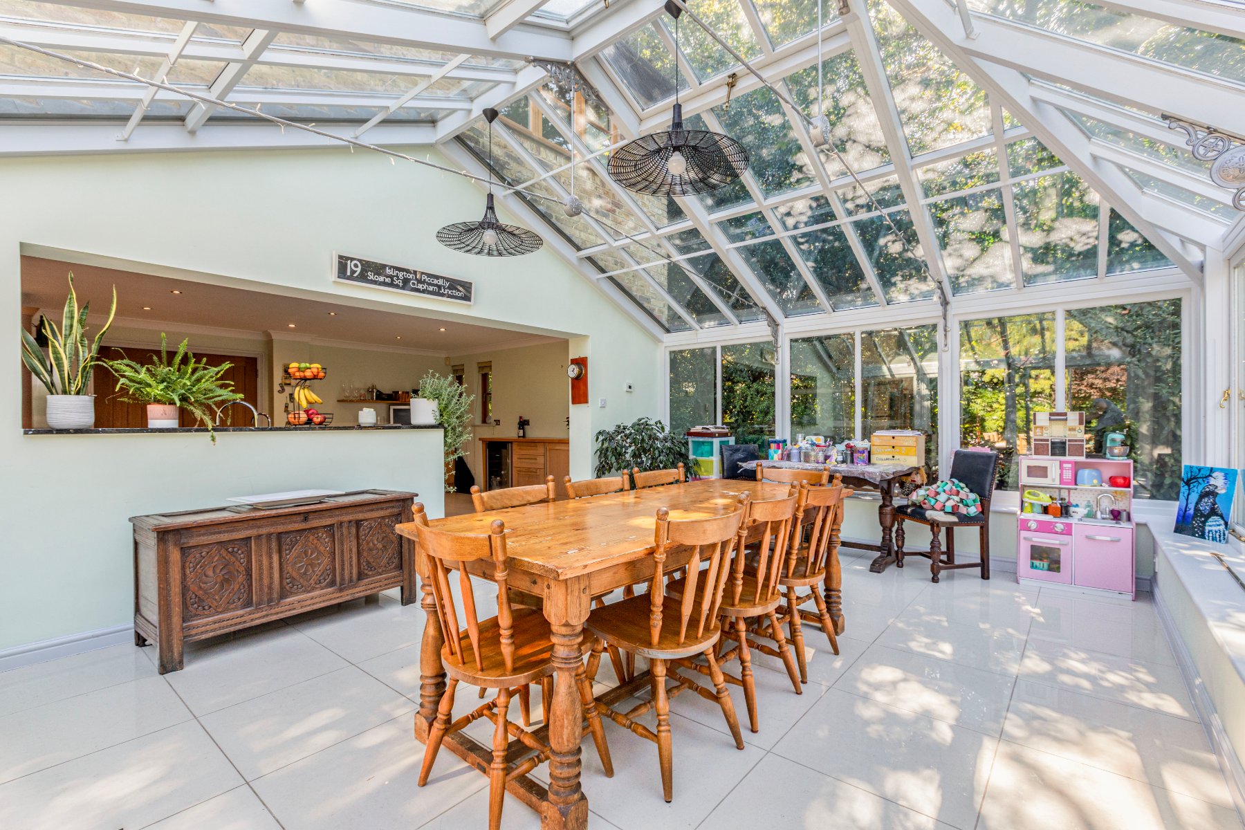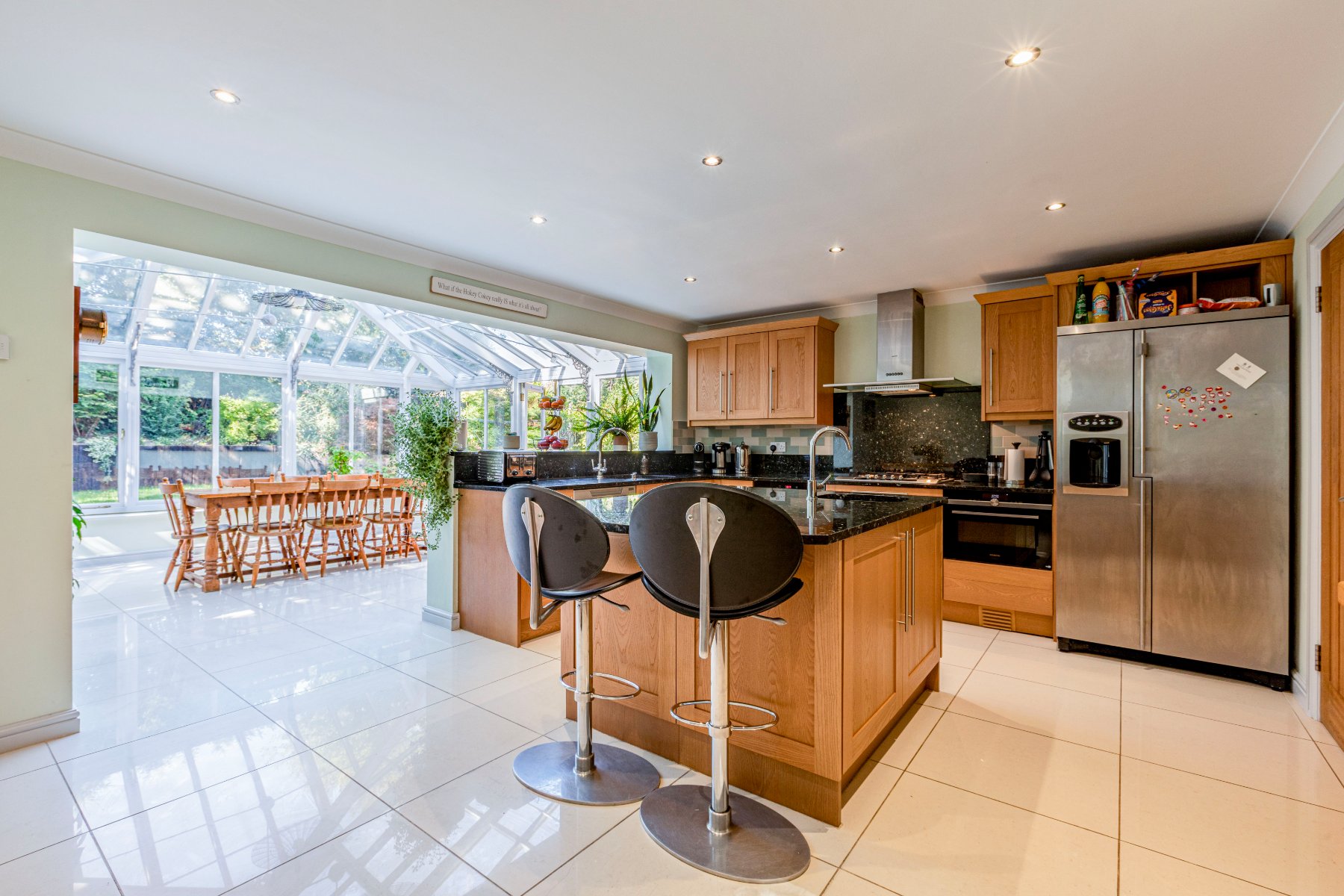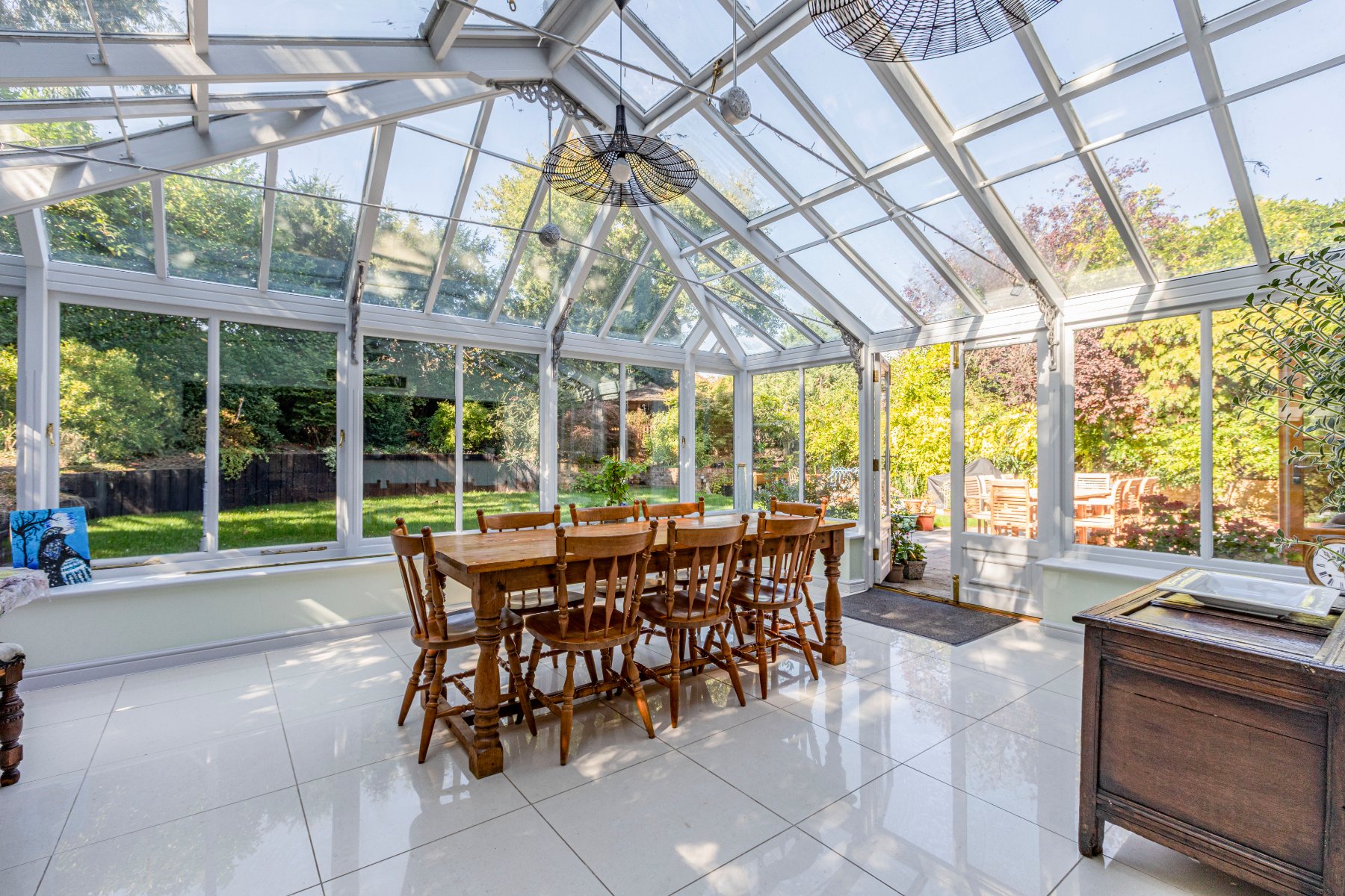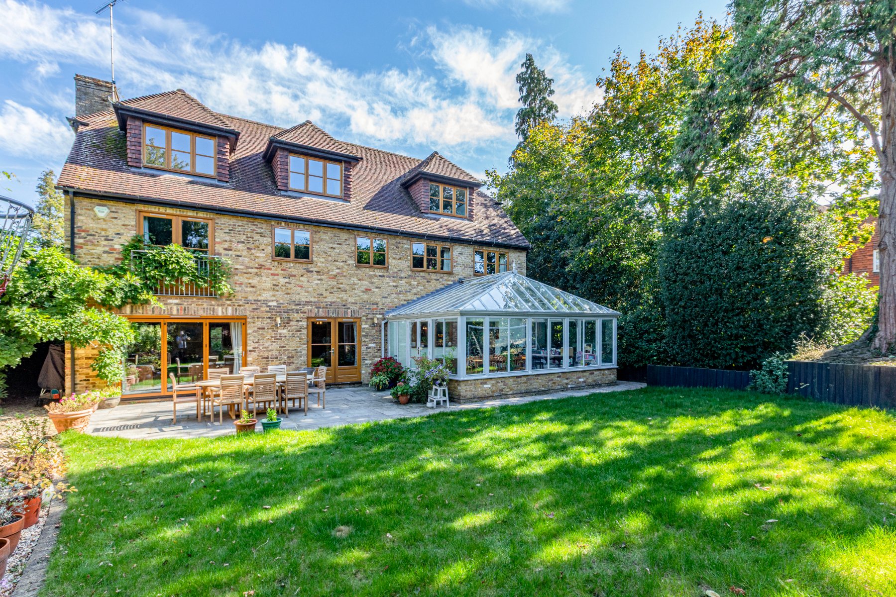 NO ONWARD CHAIN - Tucked away within a beautifully secluded and well-established plot approaching a third of an acre, this imposing and versatile 6-bedroom detached family home offers over 4,100 sq ft of well-presented accommodation across 3 floors. Located on one of the areas most prestigious private roads, the property blends modern family living with the charm and character of a period-style exterior. The spacious layout has been thoughtfully designed to cater for a range of lifestyles, including multi-generational living. The ground floor boasts a generous sitting room, an adjacent formal dining room, and a stunning kitchen/breakfast room with a large central island the heart of the home which flows seamlessly into the orangery and out to the garden. Additional ground floor highlights include a multi-purpose family room, ideal as a cinema room, gym, or games room, along with a study and a utility room. Upstairs, the principal suite features extensive fitted wardrobes (including a secret door) leading to a luxury en-suite with bath and separate shower. A spacious guest bedroom also benefits from a luxurious en-suite, and 2 further bedrooms share a well-appointed family bathroom. On the top floor are 2 more generous rooms and an additional family bathroom, with the larger room ideal as a games room or occasional bedroom. All 4 bathrooms feature both a bath and a separate shower a rare and valuable feature. Externally, the home sits on a superb, secluded plot. The front offers extensive parking on a large gravel driveway leading to a double garage, while the private, mature rear garden is beautifully landscaped and ideal for entertaining, complete with a charming breeze hut for year-round enjoyment.