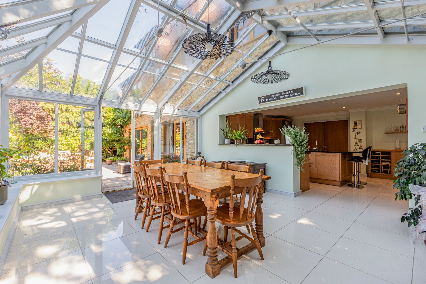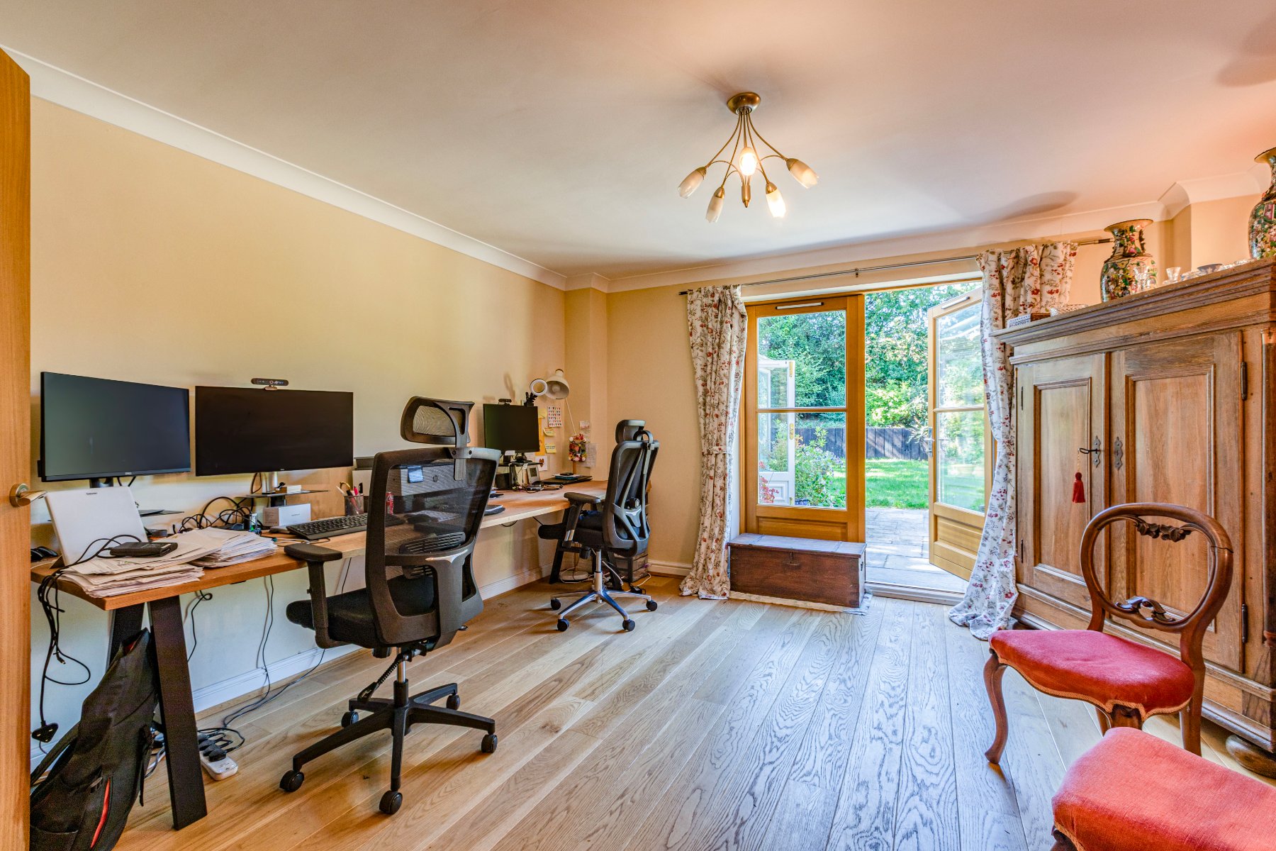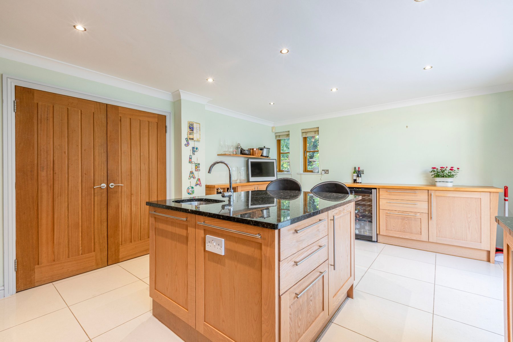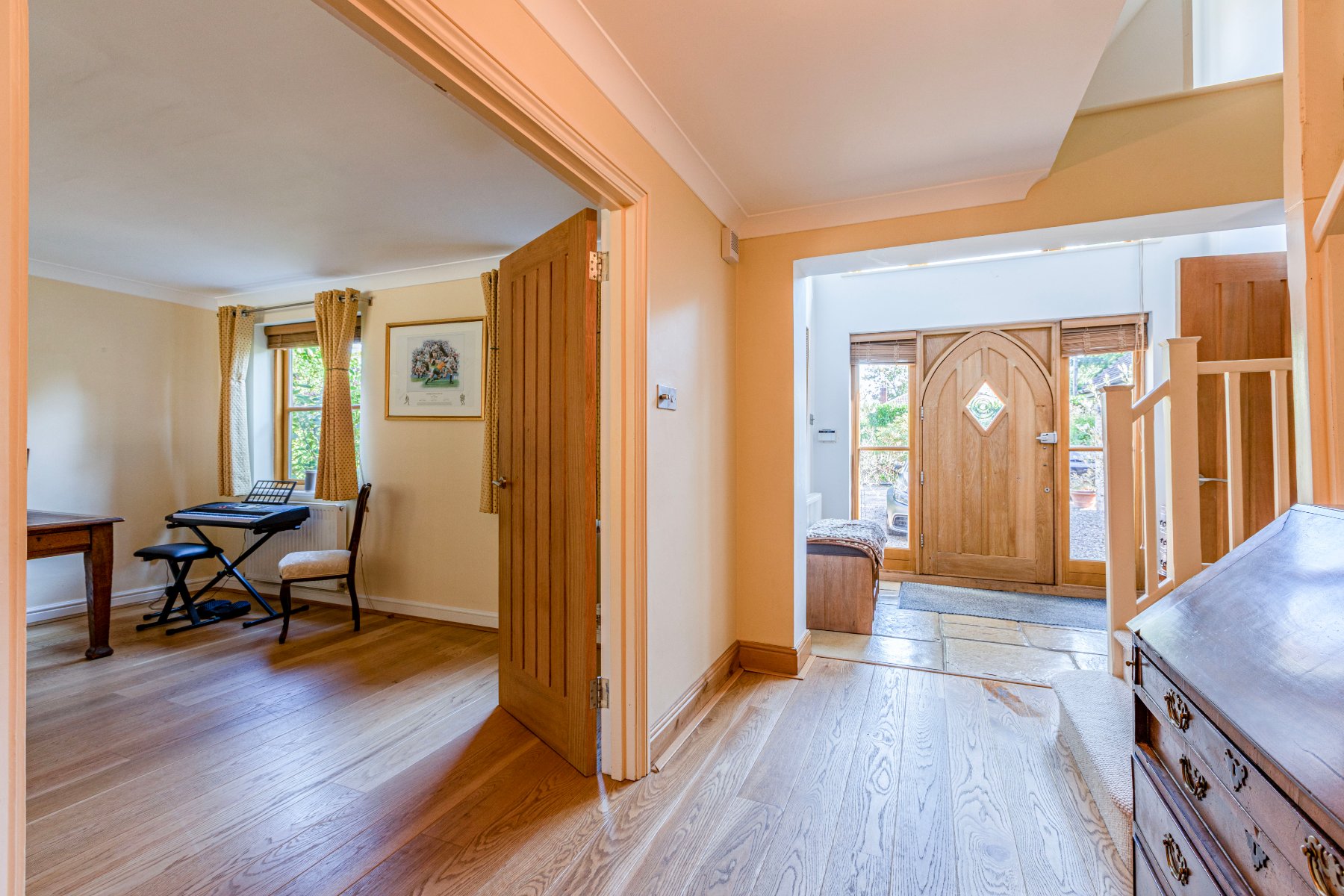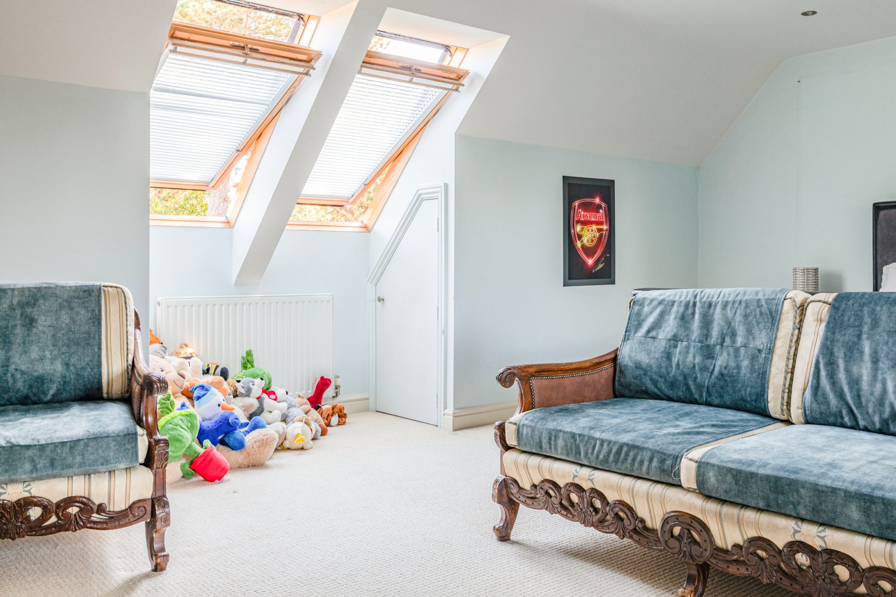 NO ONWARD CHAIN - Tucked away within a beautifully secluded and well-established plot approaching a third of an acre, this imposing and versatile 6-bedroom detached family home offers over 4,100 sq ft of well-presented accommodation across 3 floors. Located on one of the areas most prestigious private roads, the property blends modern family living with the charm and character of a period-style exterior. The spacious layout has been thoughtfully designed to cater for a range of lifestyles, including multi-generational living. The ground floor boasts a generous sitting room, an adjacent formal dining room, and a stunning kitchen/breakfast room with a large central island the heart of the home which flows seamlessly into the orangery and out to the garden. Additional ground floor highlights include a multi-purpose family room, ideal as a cinema room, gym, or games room, along with a study and a utility room. Upstairs, the principal suite features extensive fitted wardrobes (including a secret door) leading to a luxury en-suite with bath and separate shower. A spacious guest bedroom also benefits from a luxurious en-suite, and 2 further bedrooms share a well-appointed family bathroom. On the top floor are 2 more generous rooms and an additional family bathroom, with the larger room ideal as a games room or occasional bedroom. All 4 bathrooms feature both a bath and a separate shower a rare and valuable feature. Externally, the home sits on a superb, secluded plot. The front offers extensive parking on a large gravel driveway leading to a double garage, while the private, mature rear garden is beautifully landscaped and ideal for entertaining, complete with a charming breeze hut for year-round enjoyment.