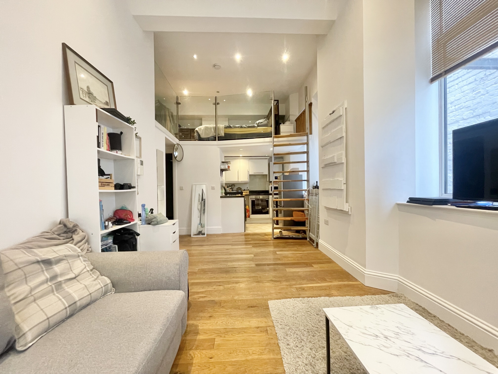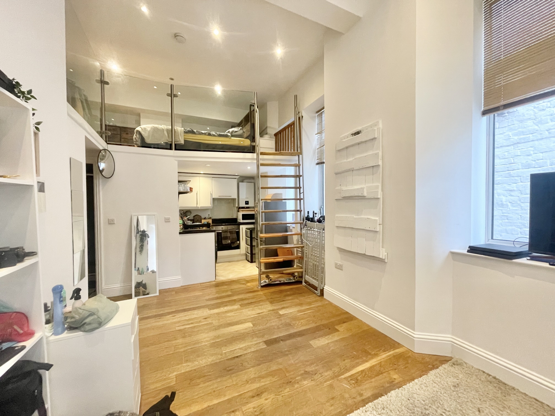 LOUNGE/DINER: 6.6m x 2.8m (21'8" x 9'2"), Double glazed window to the side and the front, steps to mezzanine.