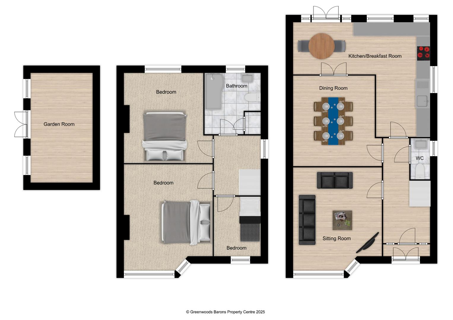 The heart of the home is undoubtedly the spacious kitchen/breakfast room, where you can enjoy casual meals or morning coffee while overlooking the garden. The adjoining dining room offers a lovely setting for more formal gatherings, ensuring that every occasion is catered for. Additionally, a convenient w/c adds to the practicality of the layout. The property comprises a living room, separate dining room / additional reception room, kitchen, and cloakroom. On the first floor you are greeted with two double bedrooms, a single bedroom and a family bathroom.