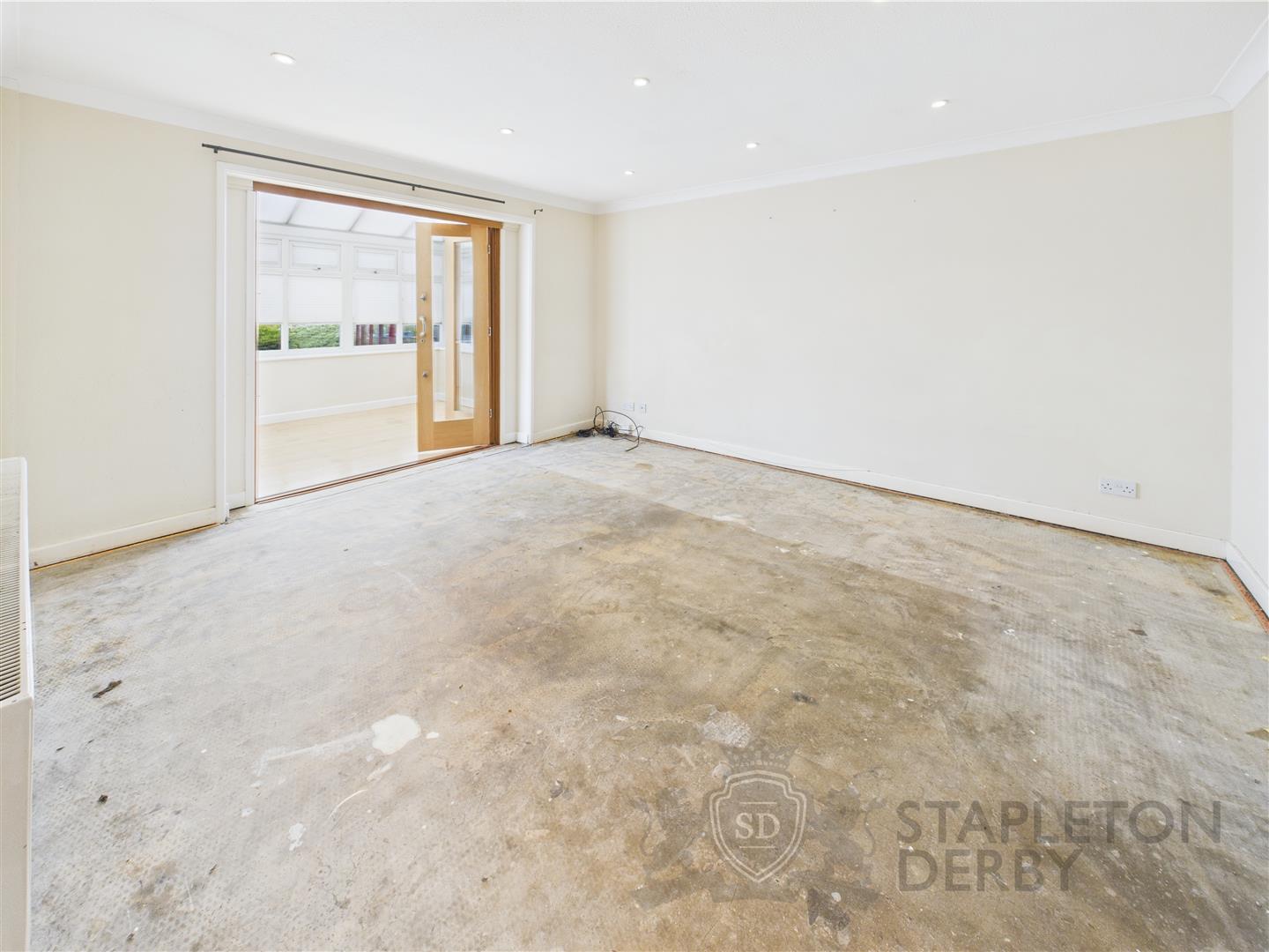 4.42m x 4.01m - Radiator, coved and textured ceiling, spotlights. Folding oak and glass doors lead into the conservatory.