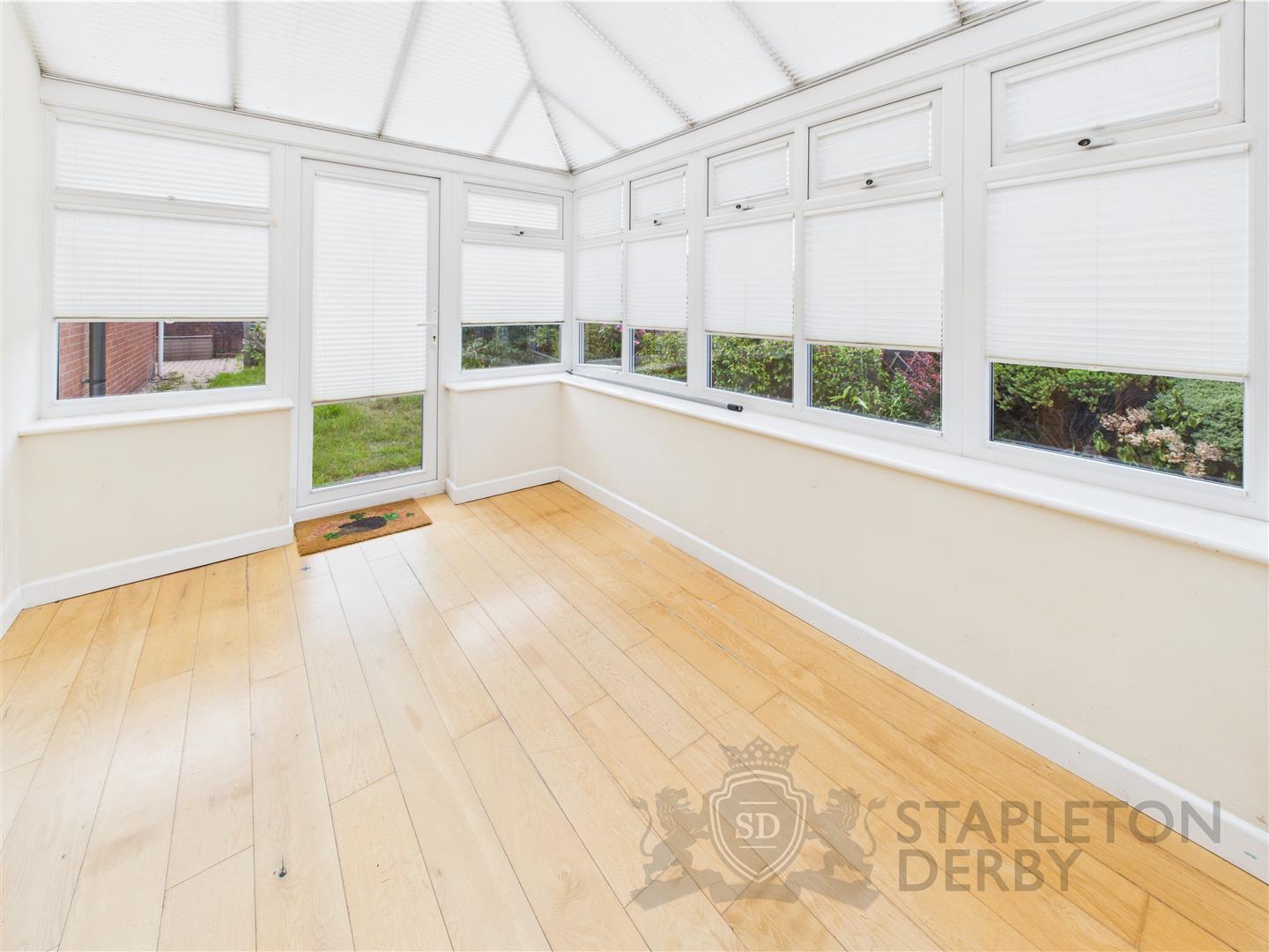 3.45m x 2.44m - Dwarf wall with double glazed units, oak effect laminate floor and polycarbonate roof. Double glazed door leading on to the rear garden.