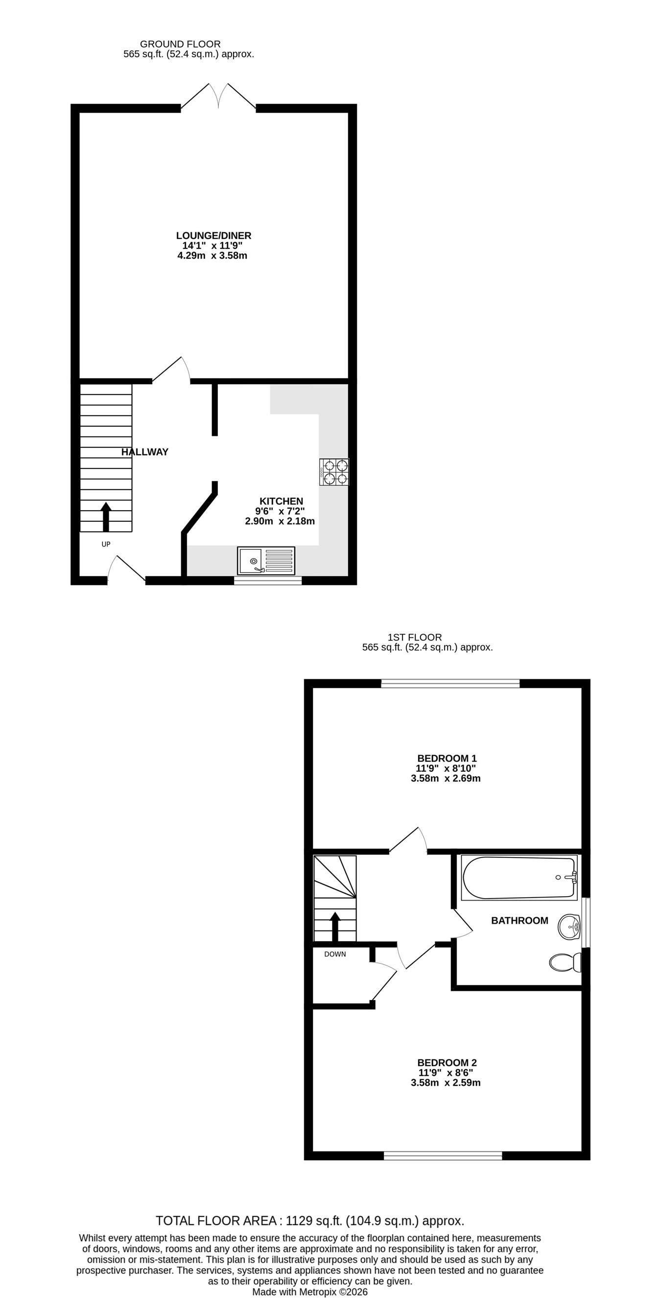 14' 1" x 11' 9" (4.29m x 3.58m)