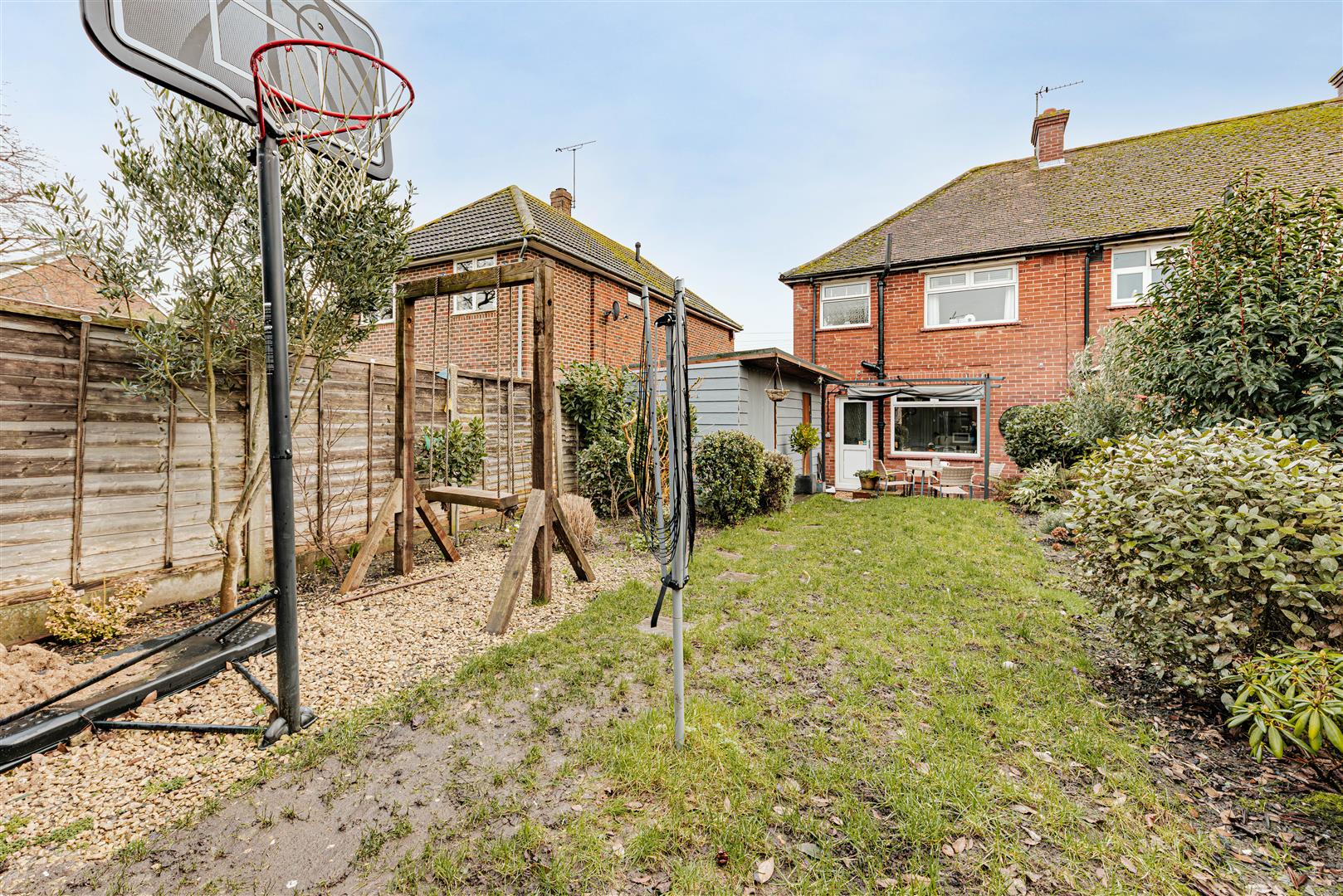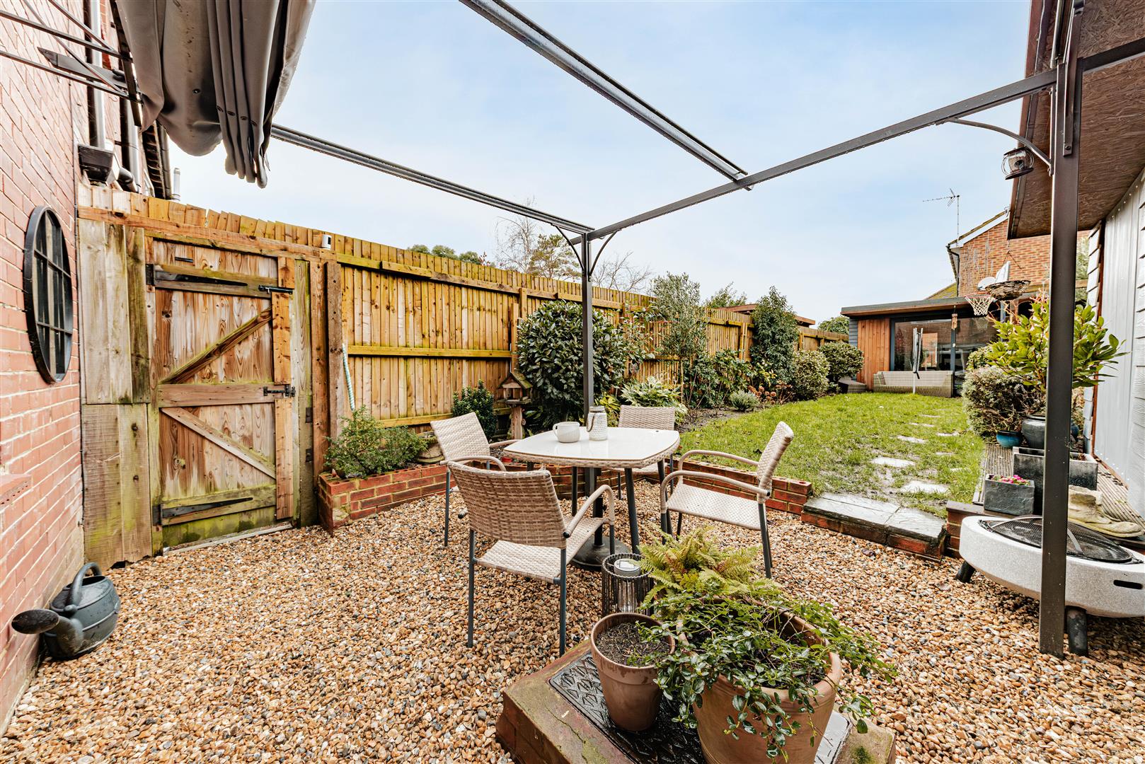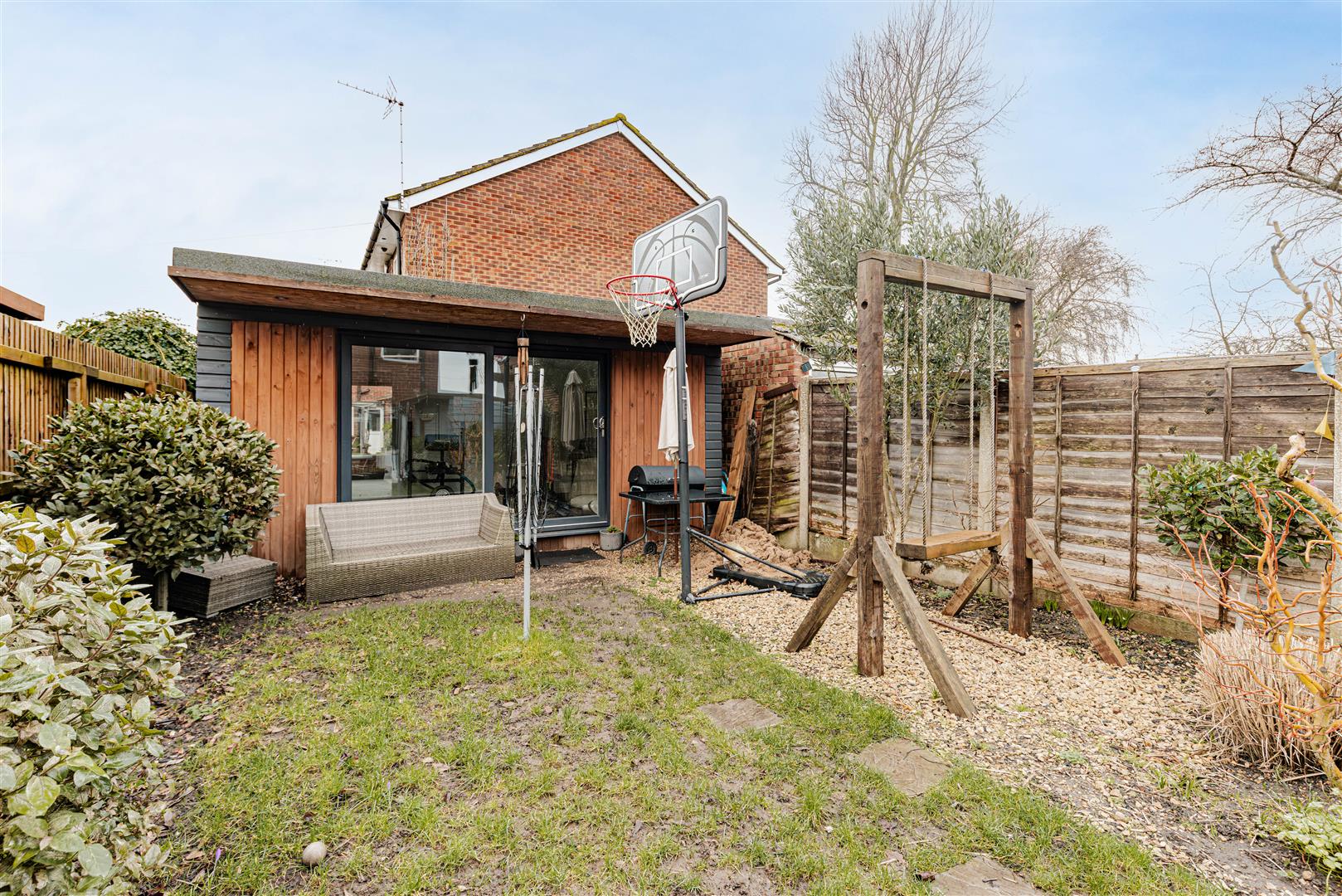 - Generous rear garden with a cabin and outside toilet