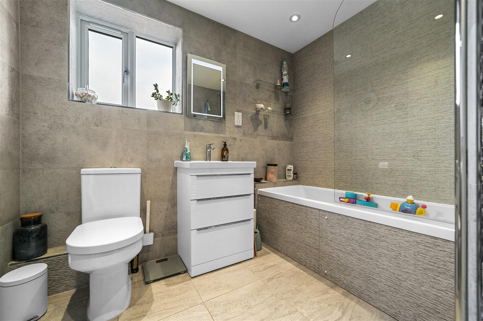 The welcoming entrance hall ushers you into a bright and airy living room, where natural light floods in, creating a serene space to unwind or entertain guests. The heart of this home is undoubtedly the stylish kitchen/diner, boasting sleek tiled flooring and double doors that invite the outdoors in. Culinary enthusiasts will revel in the kitchen's high-end finishes, including quartz countertops and a suite of integrated Neff appliances, ensuring meal preparations are both effortless and enjoyable.